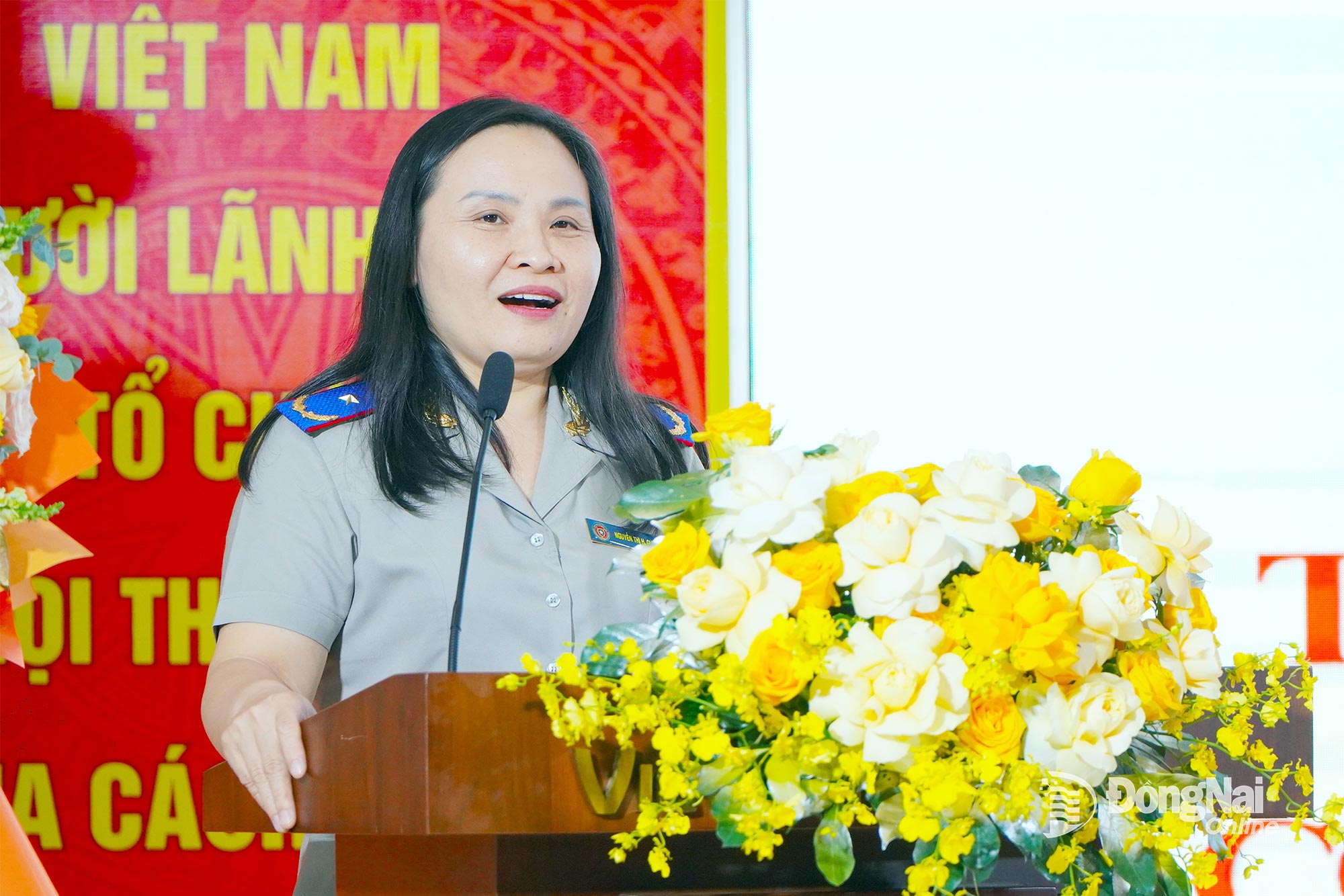 Trưởng Thi hành án dân sự tỉnh Đồng Nai Trịnh Ngọc Quỳnh chia sẻ kết quả thực hiện công tác thi hành án dân sự thời gian qua. Ảnh: An Nhơn