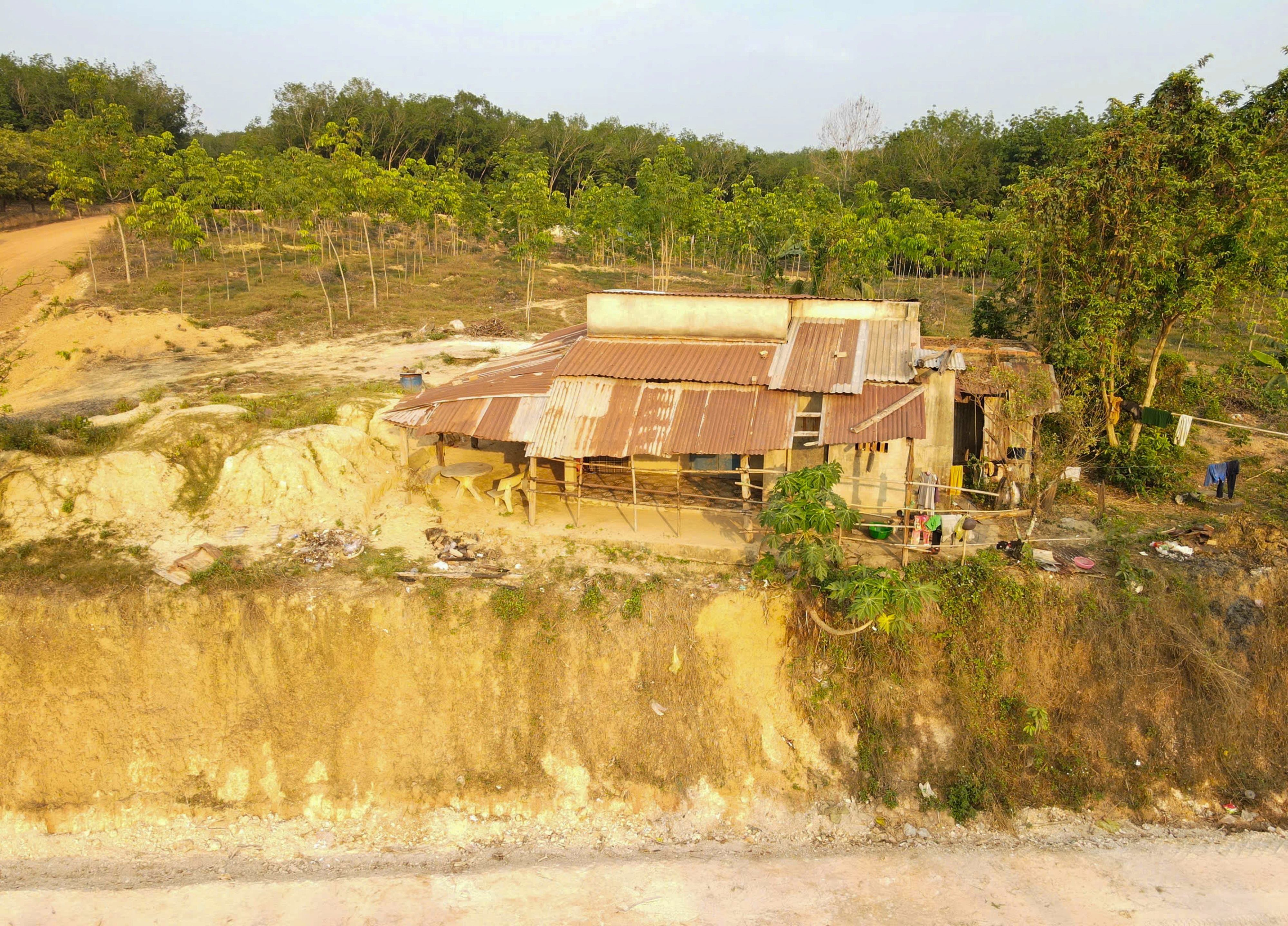 Dự án xây dựng tuyến đường từ xã Phú Trung đi xã Phước Tân, kết nối ĐH312 với ĐT759 hạ cốt nền quá sâu khiến nhiều nhà dân nằm "cheo leo". Ảnh: Văn Dũng