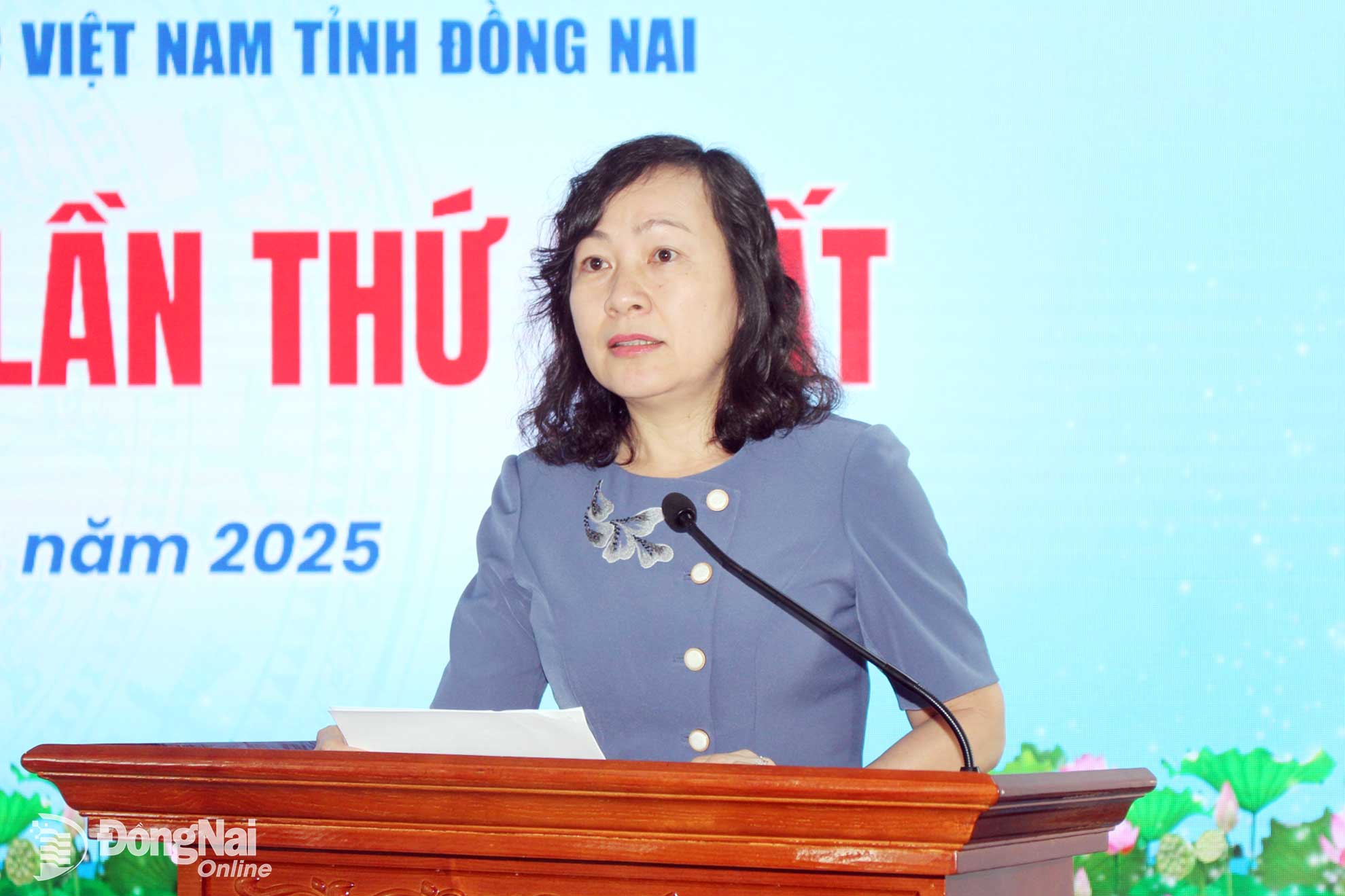 Phó Bí thư Tỉnh ủy, Chủ tịch Ủy ban MTTQ Việt Nam tỉnh Đồng Nai Huỳnh Thị Hằng phát biểu khai mạc hội nghị. Ảnh: Hồ Thảo
