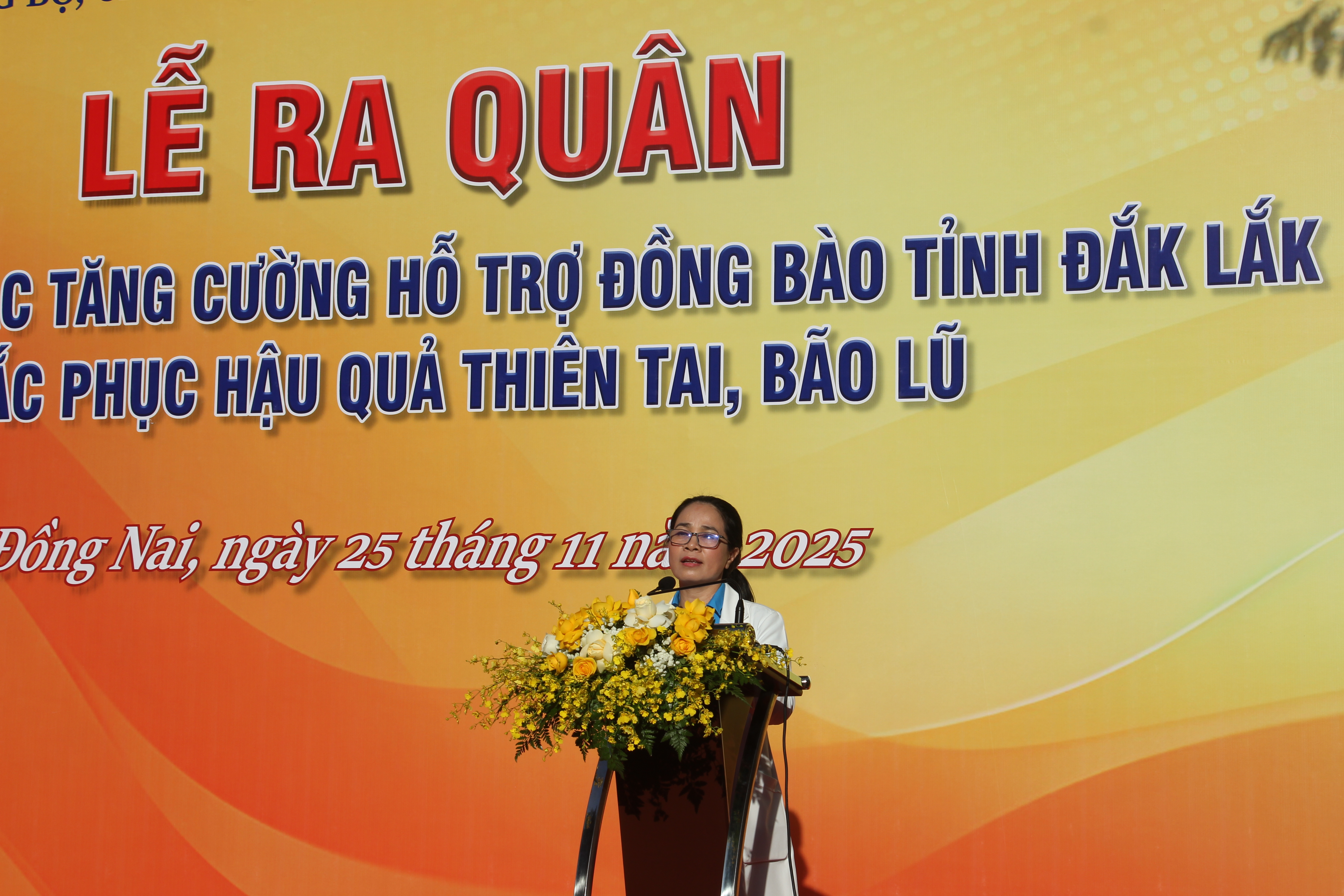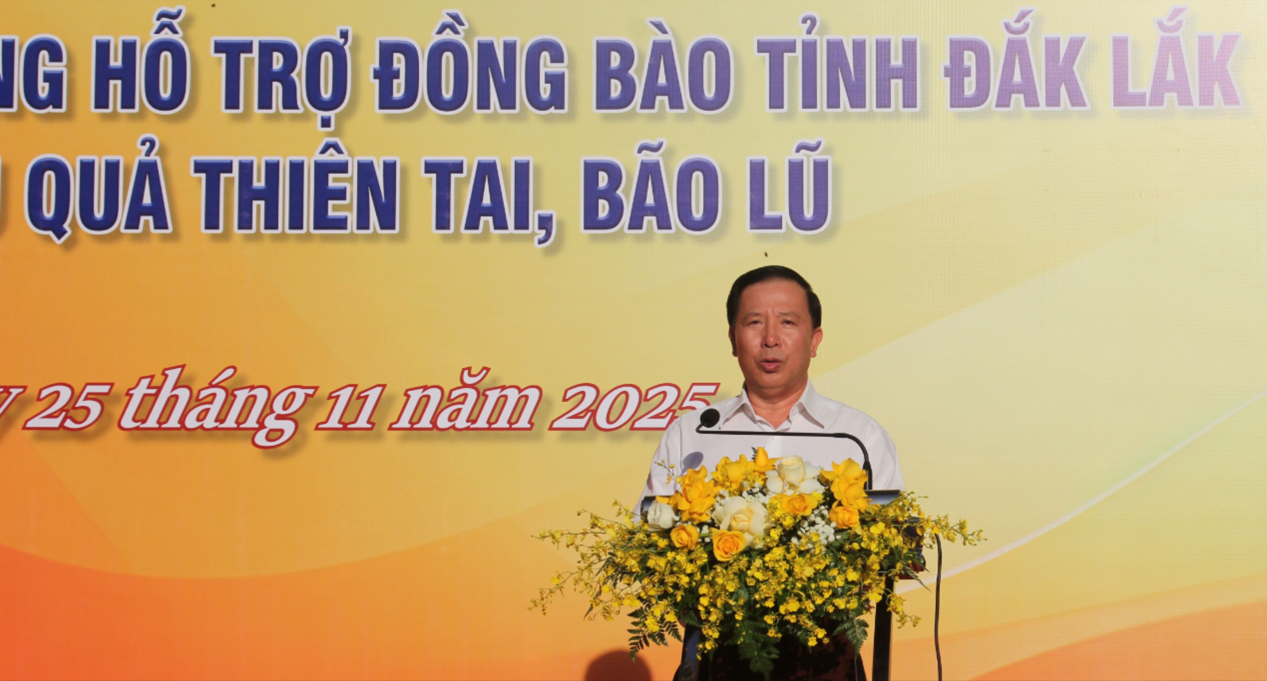 Phát biểu tại buổi lễ, Chủ tịch UBND tỉnh Đồng Nai Nguyễn Văn Út bày tỏ chia sẻ sâu sắc với những tổn thất mà Đảng bộ, chính quyền và nhân dân tỉnh Đắk Lắk đang gánh chịu, đồng thời khẳng định: Phát huy truyền thống “tương thân tương ái”, "lá lành đùm lá rách" với tinh thần trách nhiệm và nghĩa tình, tỉnh Đồng Nai quyết định cử đoàn công tác mang theo thuốc men, thiết bị y tế và nhu yếu phẩm thiết yếu nhằm kịp thời hỗ trợ địa phương bạn vượt qua khó khăn trước mắt.