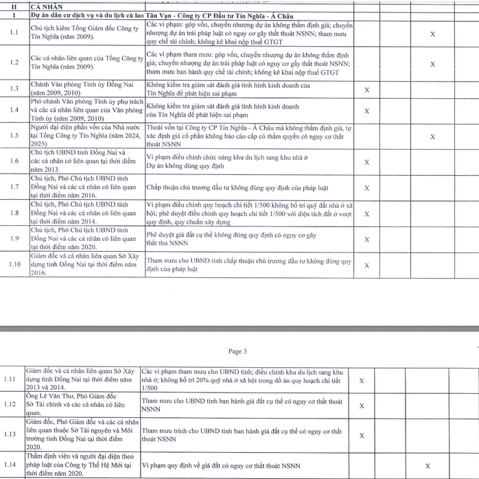 Cụ thể, về việc lập, thẩm định phê duyệt điều chỉnh quy hoạch chi tiết 1/500 vi phạm quy định pháp luật, Công ty Tín Nghĩa - Á Châu bán nhà hình thành trong tương lai khi chưa đủ điều kiện quy định.