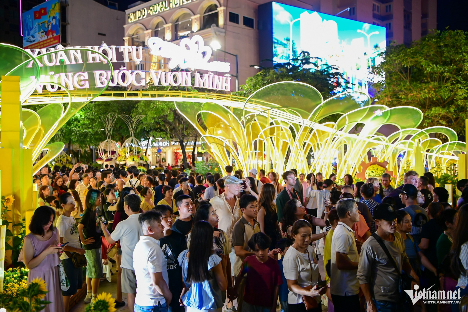Với chủ đề "Xuân hội tụ, vững bước vươn mình", đường hoa Nguyễn Huệ đón hàng nghìn người tham quan ngày đầu mở cửa (tối 15/2).