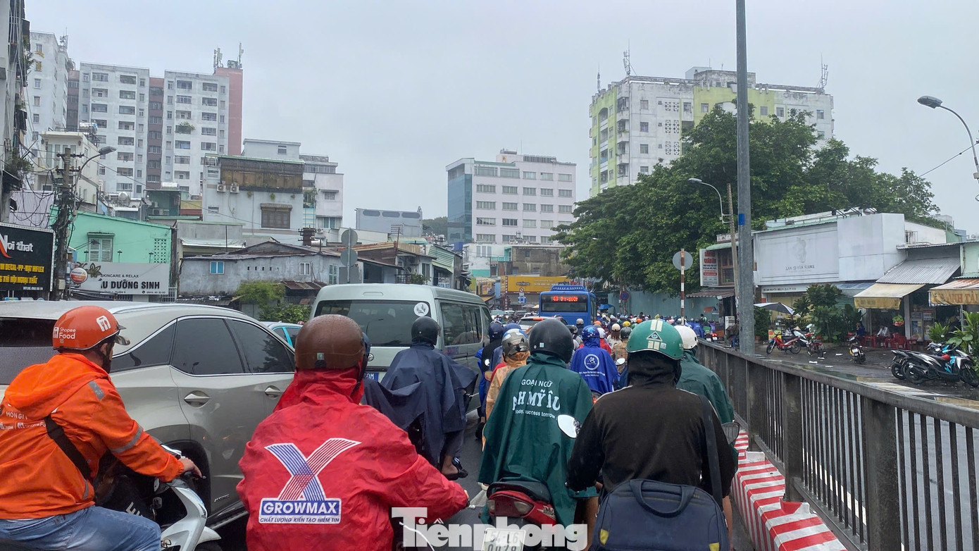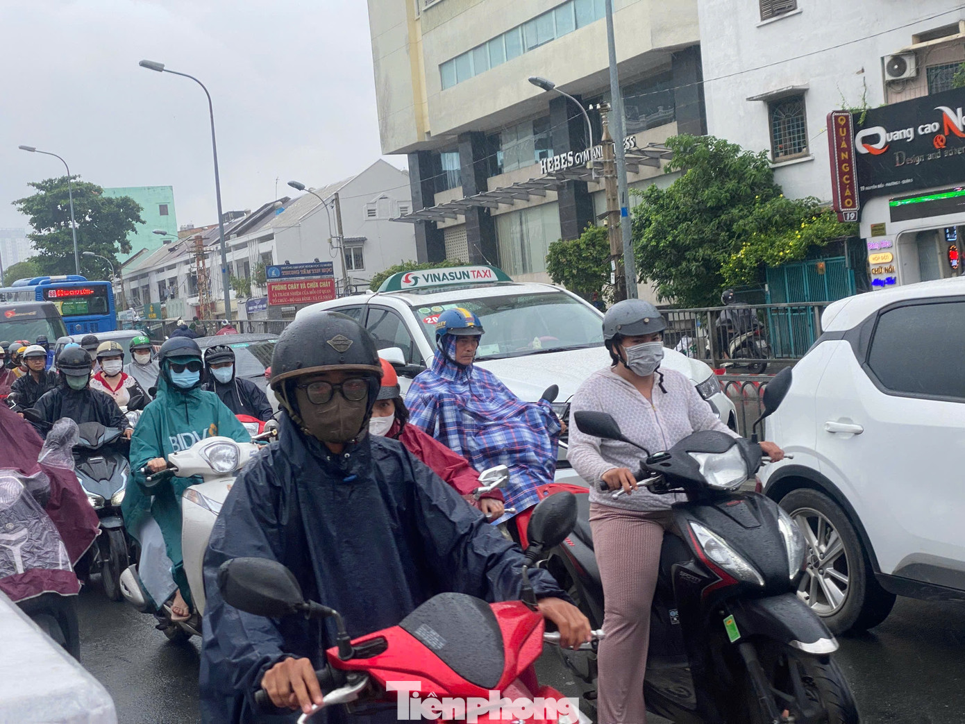 Ghi nhận trên các tuyến đường như Võ Văn Kiệt, Hồ Học Lãm, quốc lộ 1, cầu chữ Y, Nguyễn Hữu Cảnh,… hàng nghìn phương tiện nối đuôi nhau di chuyển chậm chạp. Mưa rả rích khiến nhiều người phải dừng xe mặc áo mưa, khiến tình trạng ùn ứ càng thêm nghiêm trọng. Không ít người đi làm, học sinh đến trường phải đội mưa, len lỏi giữa dòng xe ken đặc.