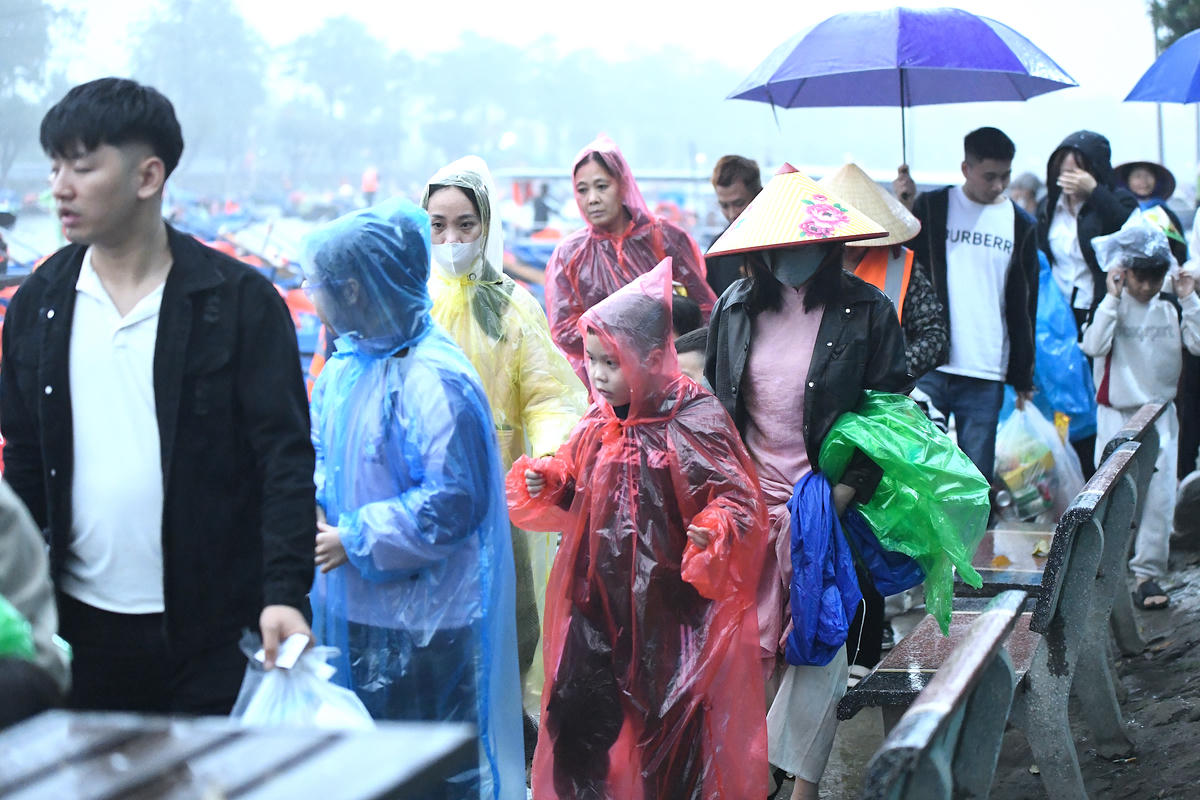 Nhiều em nhỏ đội mưa cùng cha mẹ, háo hức theo bước chân trẩy hội chùa Hương. Ảnh: Phạm Sỹ.