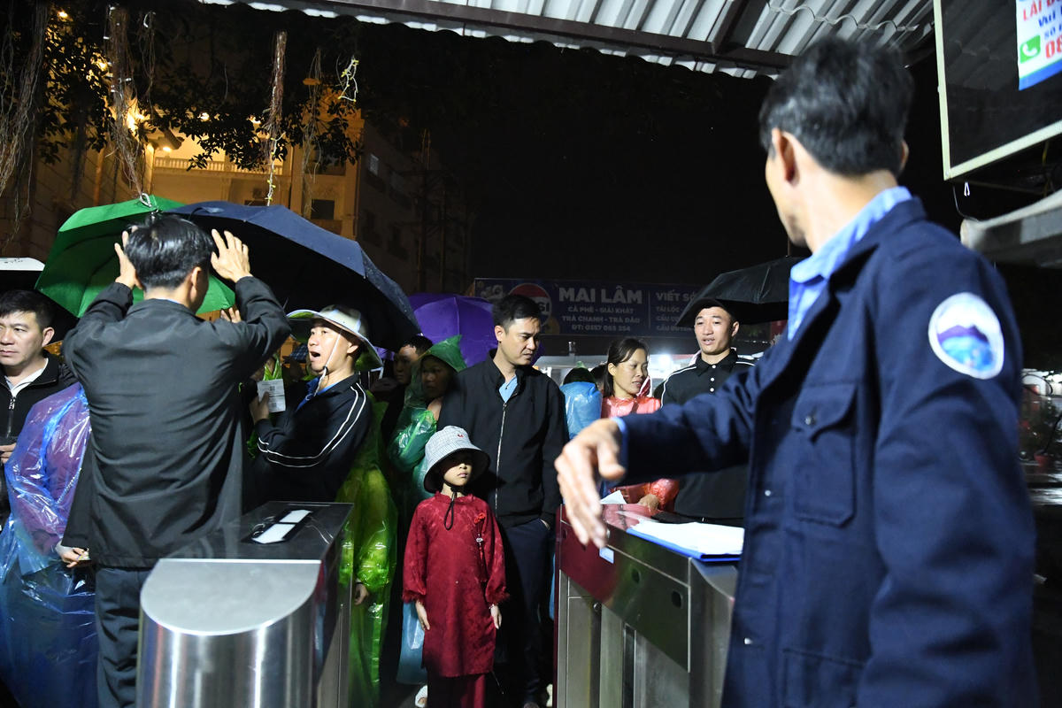 Việc kiểm soát vé được siết chặt, bảo đảm trật tự trong mùa lễ hội. Ảnh: Phạm Sỹ.