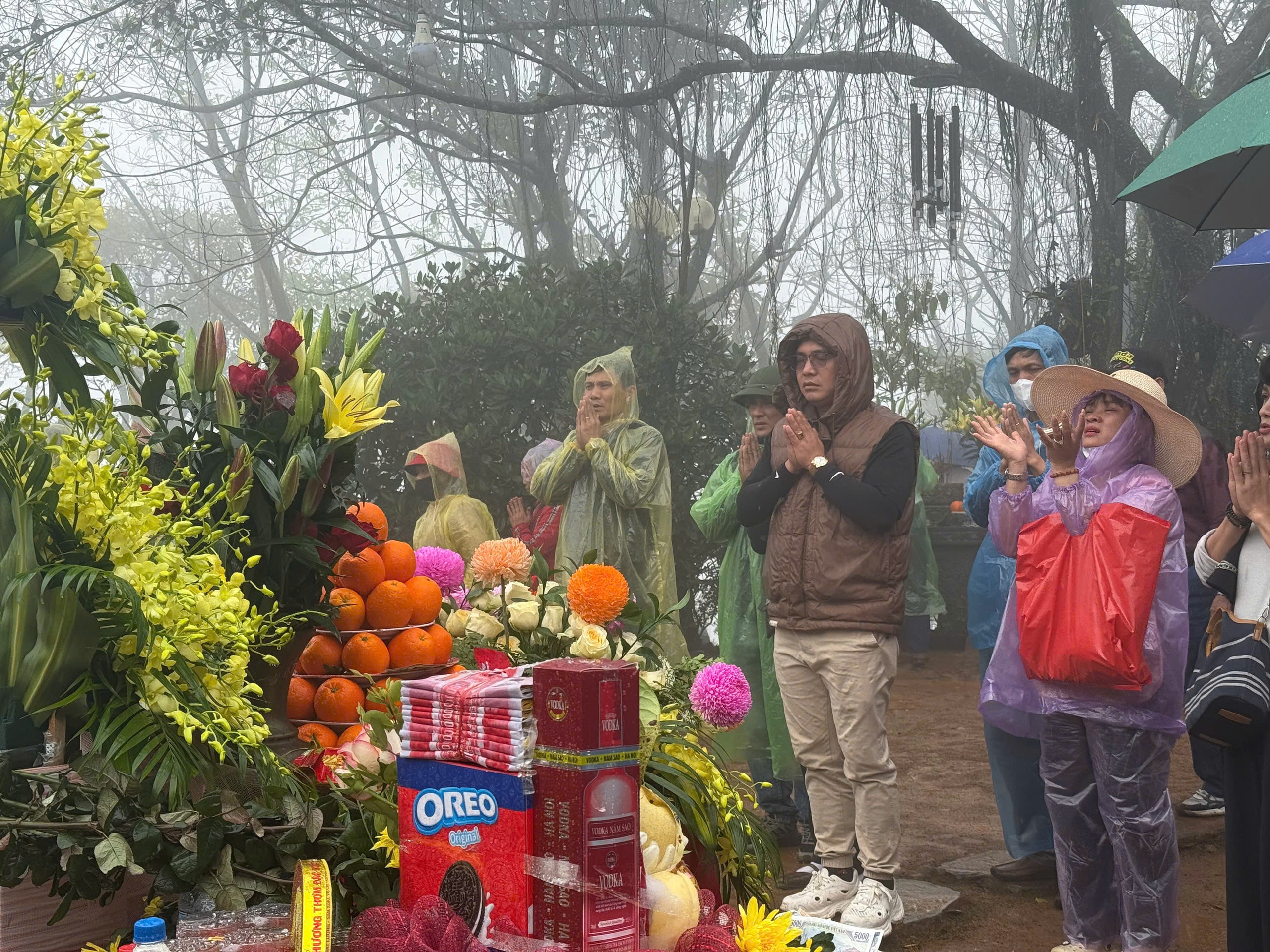 Dòng người đội mưa, vượt sương mù lên đỉnh núi Nưa trong sáng mùng 9 tháng Giêng (Ảnh: P.Tuấn).