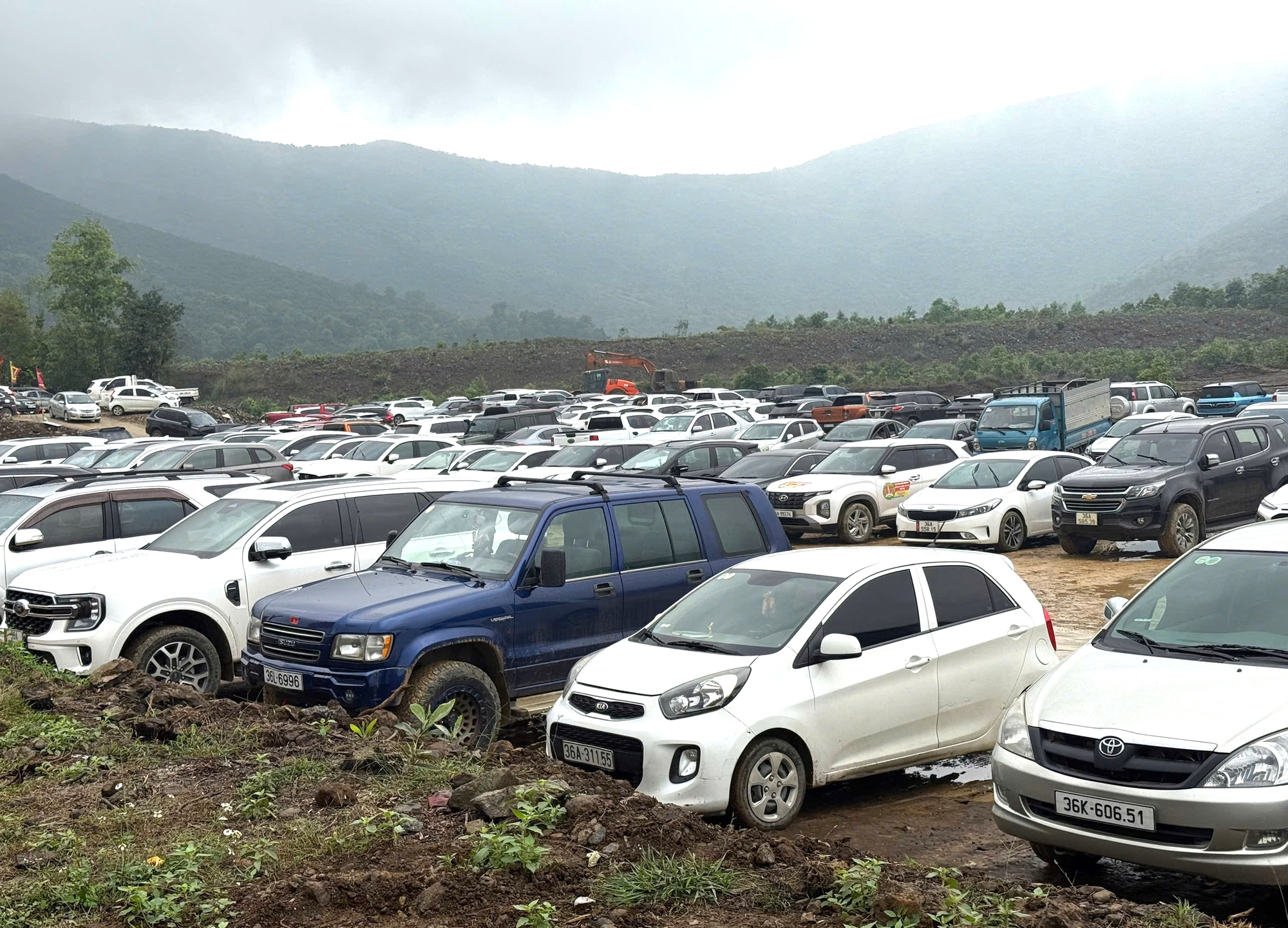 Đông nghịt xe ô tô đến đền Am Tiên trong sáng ngày mùng 9 tháng Giêng (Ảnh: P.Tuấn).