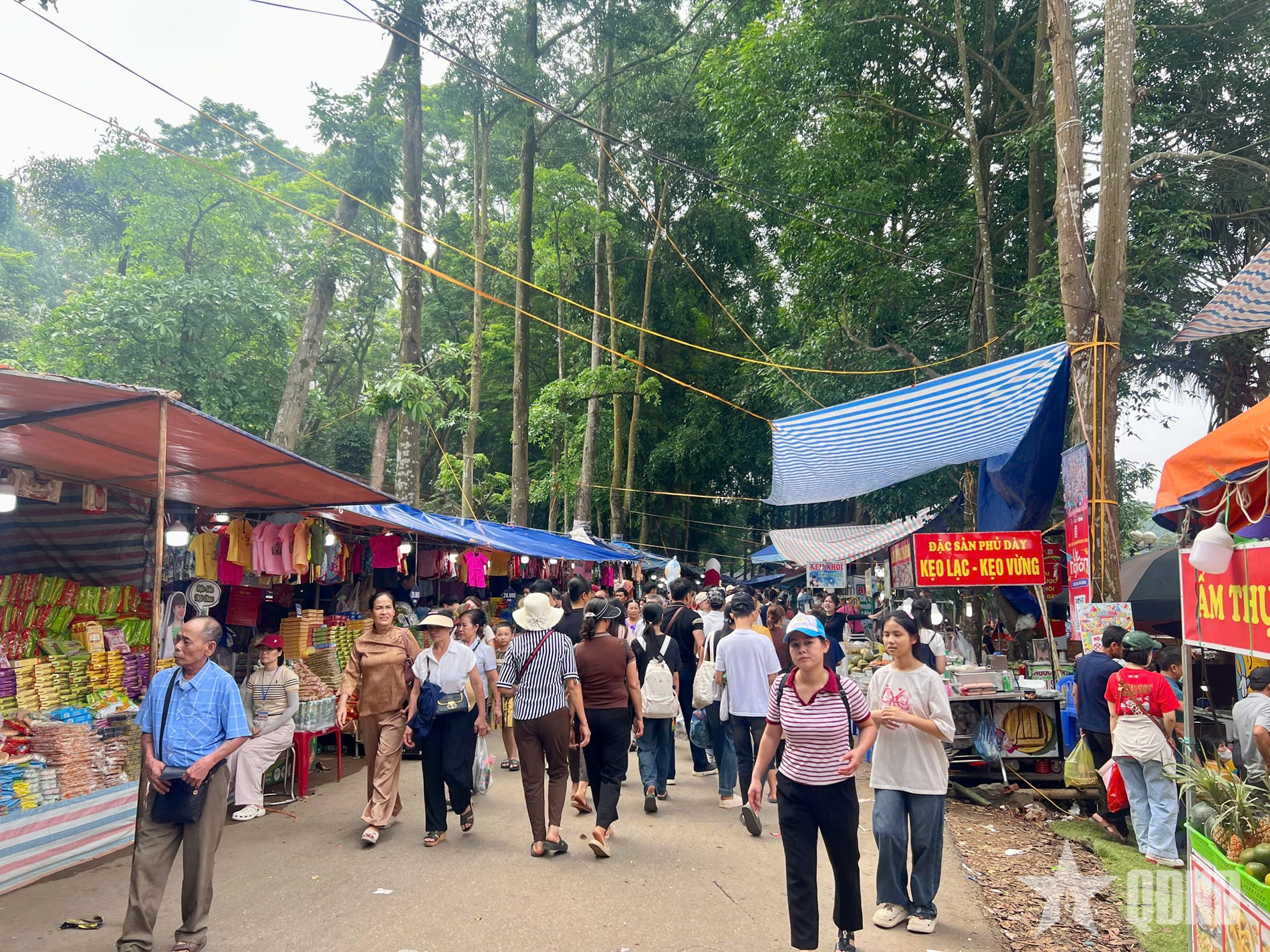 Theo ghi nhận của nhóm phóng viên Báo Quân đội nhân dân, tại các điểm tổ chức văn hóa và thể thao ken kín người dân tham gia và đứng xem trình diễn. Thời tiết mát mẻ, trời quang, tới gần trưa mới có nắng nhẹ… thuận lợi cho người dân và du khách đến hành hương, trải nghiệm văn hóa, vui chơi.