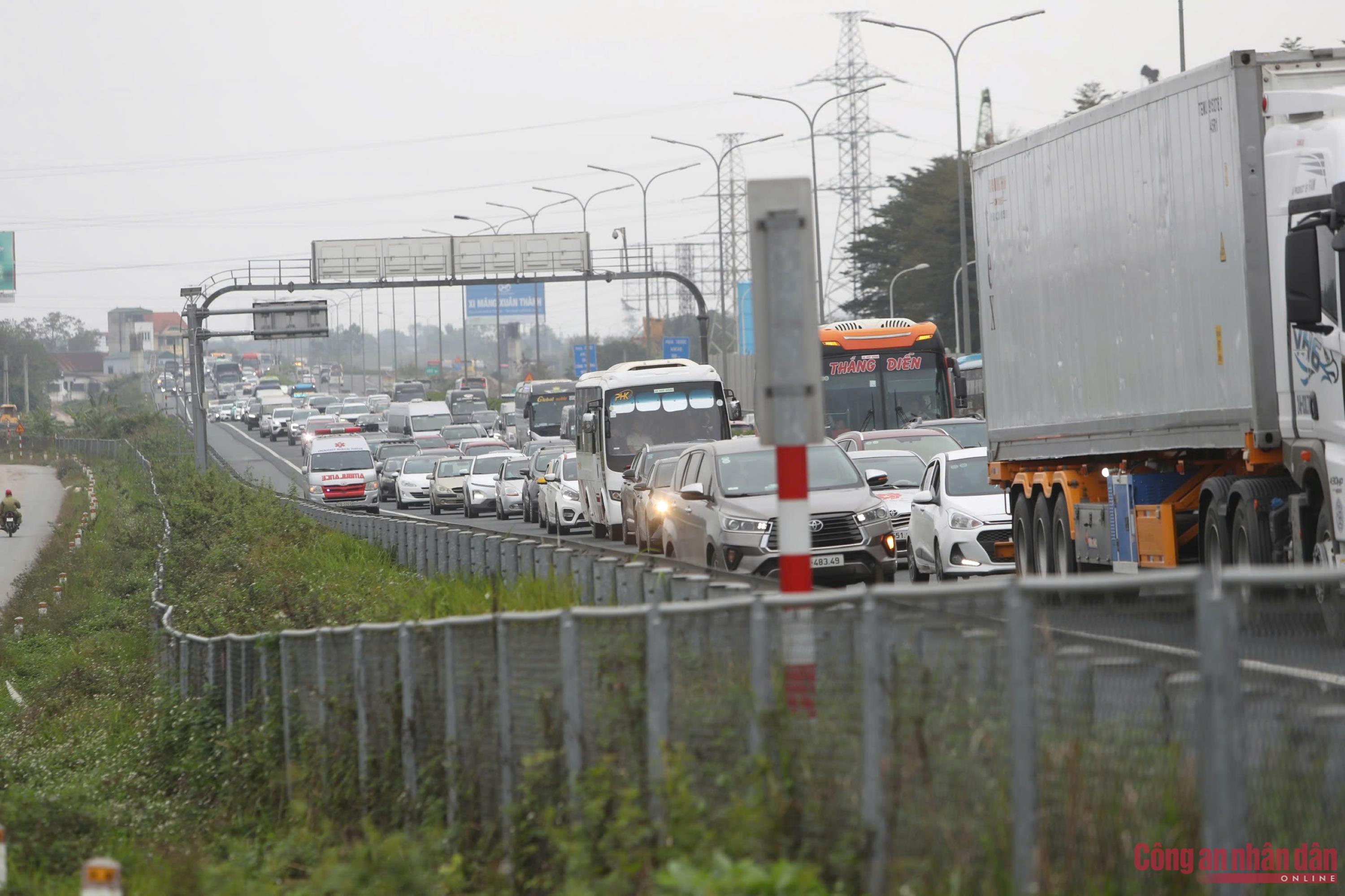 Chiều 22/2, tại khu vực Pháp Vân – Cầu Giẽ, cửa ngõ phía Nam Thủ đô, các phương tiện nối đuôi nhau kéo dài, di chuyển chậm khi lưu lượng xe đổ về Hà Nội tăng cao