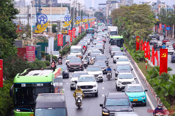 Chiều 22/2 (tức mùng 6 Tết Bính Ngọ 2026), tại nhiều cửa ngõ, lượng người và phương tiện trở lại Thủ đô tiếp tục gia tăng, mật độ giao thông mỗi lúc một đông.
