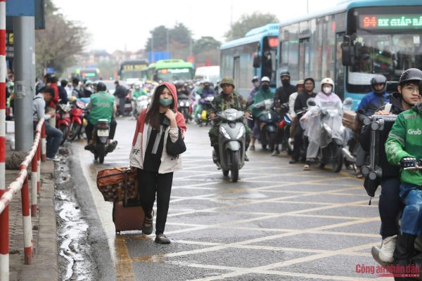 Theo ghi nhận của phóng viên, phần lớn là người dân trở lại Thủ đô để lao động, học tập sau kỳ nghỉ Tết Nguyên đán 2026. Trong điều kiện mưa phùn, nhiều người chở theo hành lý cồng kềnh nên việc di chuyển gặp không ít khó khăn.