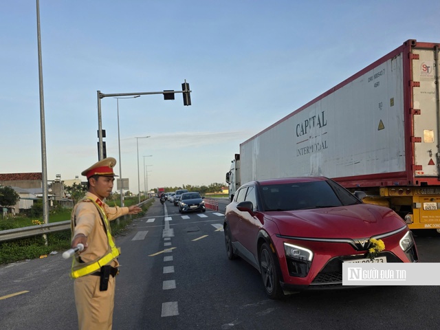Cùng với việc kiểm tra trên tuyến, lực lượng CSGT cũng hướng dẫn, điều tiết, phân luồng để các phương tiện di chuyển đúng quy định
