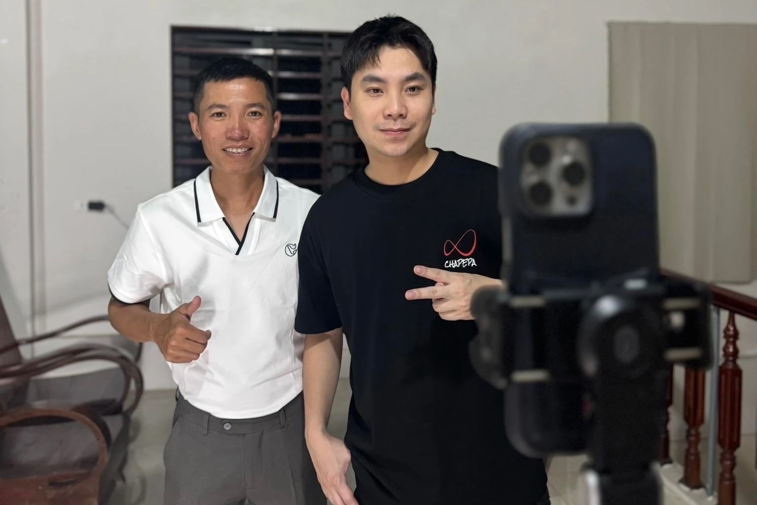Quý Tạ và Nguyễn Nam Hoàng trong lần lên sóng livestream đầu tiên vào hôm 22/6 sau 3 tháng gián đoạn vì ồn ào của Quang Linh Vlogs. Ảnh: Quý Tạ/Facebook.