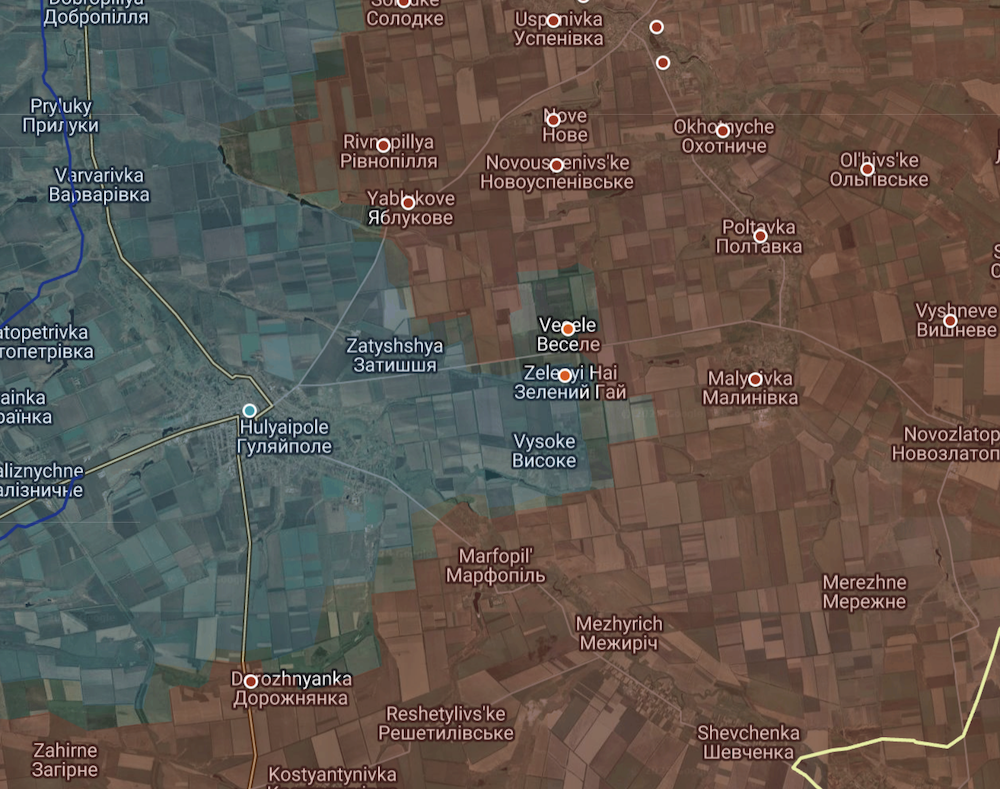 Các đơn vị phòng thủ miền Nam của Ukraine cho biết, quân đội Nga đã gia tăng hoạt động tiến sát các trục hậu cần nối sang vùng Dnipropetrovsk, đồng thời di chuyển từng nhóm nhỏ qua các dải rừng để luồn sâu vào hệ thống phòng ngự của Ukraine. Giao tranh dữ dội nhất được ghi nhận gần khu vực Yablukove, cách Huliaipole khoảng 10 km về phía đông bắc.