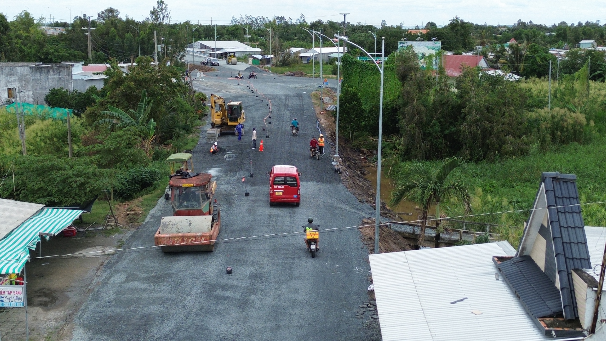 Thi công đường dẫn đầu cầu Kênh Tứ, xã Trường Xuân (tỉnh Đồng Tháp).