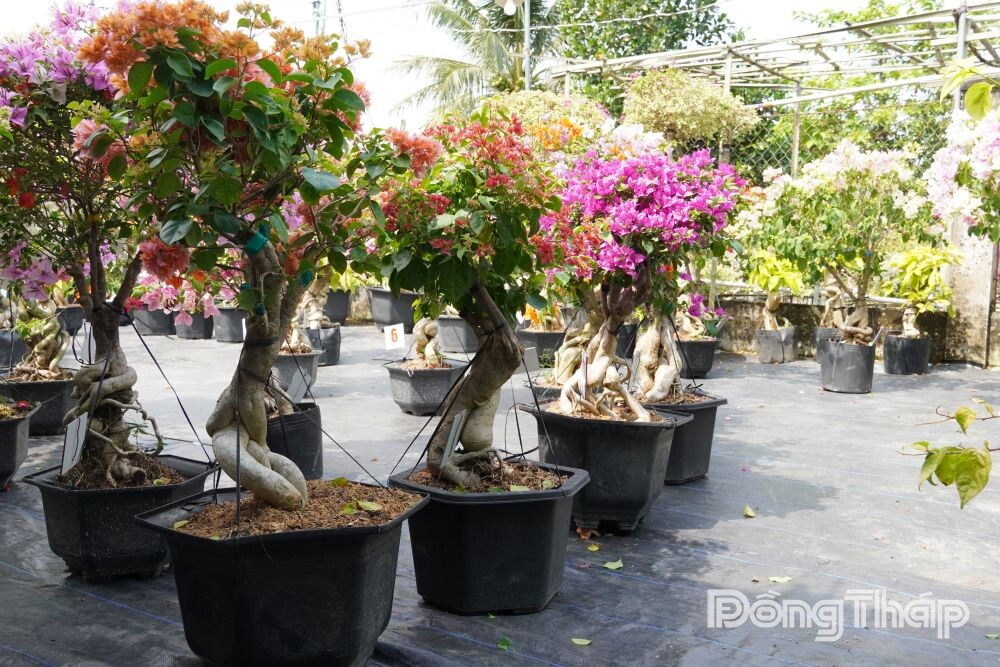 Những chậu cây như: Linh sam, lộc vừng, bông giấy, bông trang… được uốn theo hình dáng mang ý nghĩa may mắn và tài lộc. Tổ đầu tư cơ sở hạ tầng, trồng nhiều giống hoa, kiểng quý hiếm, mới lạ, phục vụ cho thị trường.