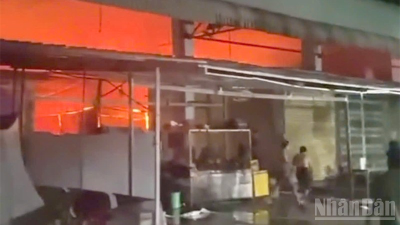Khu vực xảy ra cháy là ki-ốt bán vải, quần áo, dụng cụ học sinh, với diện tích cháy 125m2.