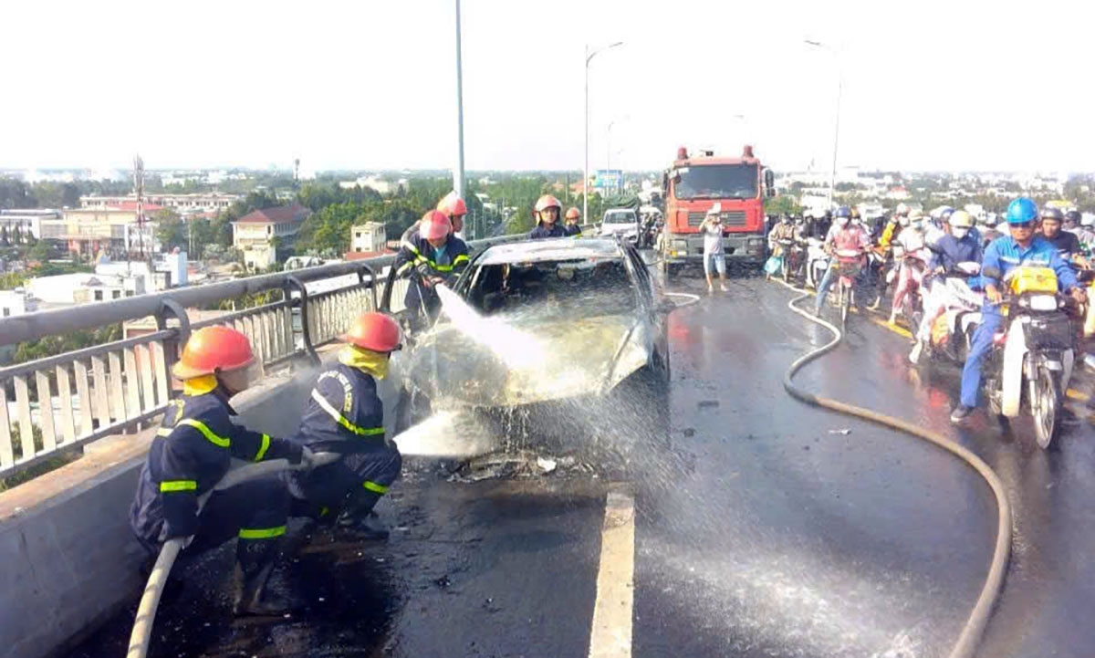 Vào khoảng 14h45 phút cùng ngày, chiếc xe ô tô 4 chỗ màu đỏ mang biển kiểm soát 66A-463.58 do tài xế Nguyễn Hoàng Ý (sinh năm 1991, ngụ phường Thới Sơn, Đồng Tháp) điều khiển, bất ngờ bốc cháy trên cầu Rạch Miễu, phía bờ Mỹ Tho, hướng từ Đồng Tháp đi Vĩnh Long.