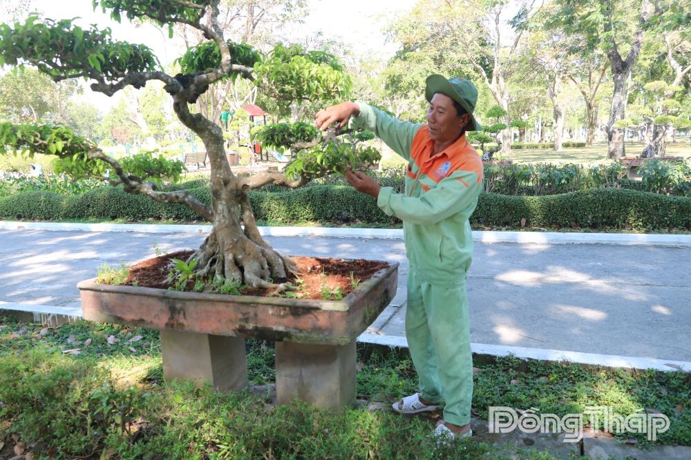 Ông Huỳnh Văn Lơi, nhân viên Tổ Hạ tầng đô thị, cho biết: “Tôi phụ trách cắt tỉa cây kiểng, bonsai tại Công viên Văn Miếu. Thời điểm này, anh em trong Tổ tập trung dọn vệ sinh, nhổ cỏ, tưới nước chăm sóc cây xanh. Từ khoảng 25 tháng Chạp, Tổ sẽ trang trí hoa, cây lá màu, tạo tiểu cảnh để công viên thêm rực rỡ trong dịp tết”.