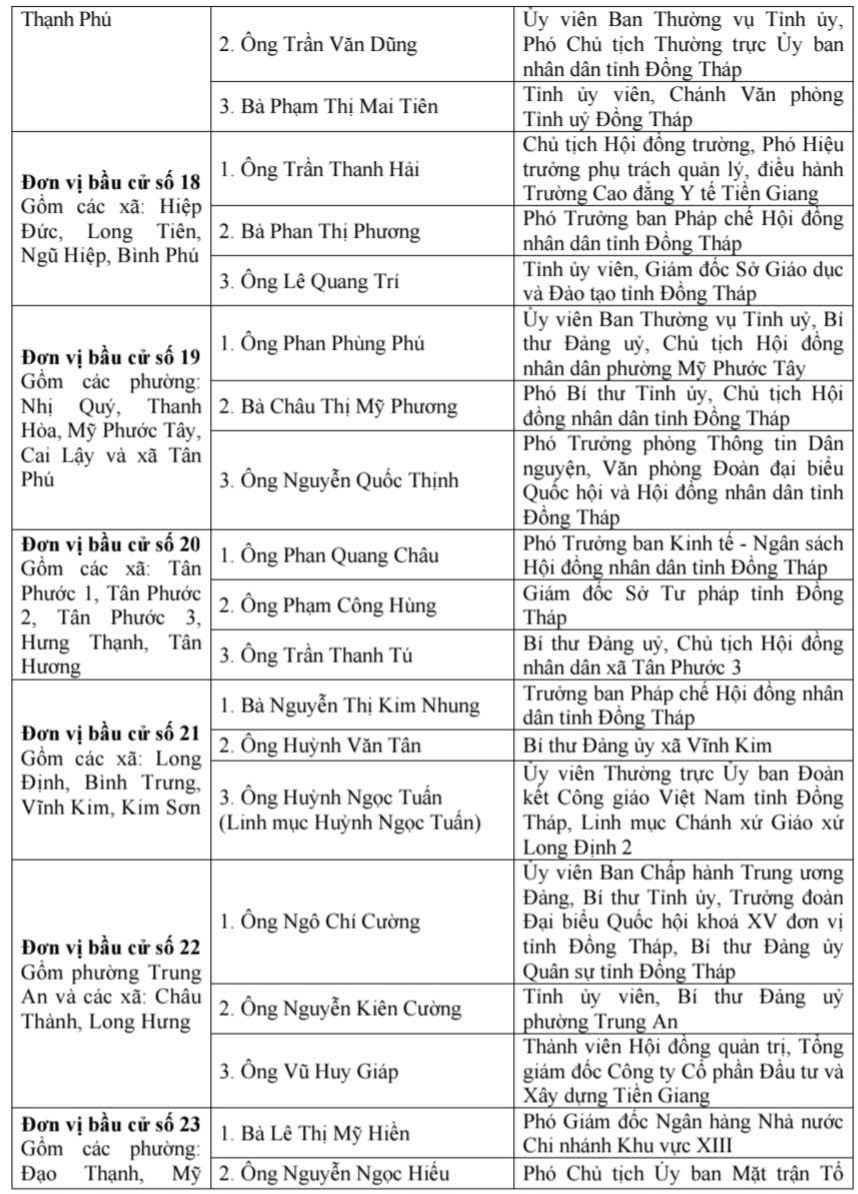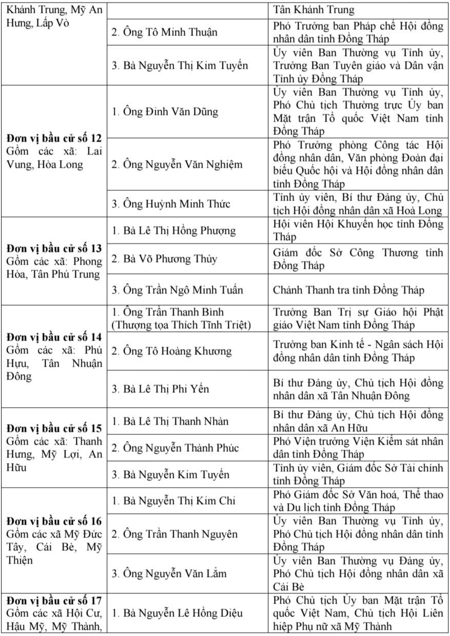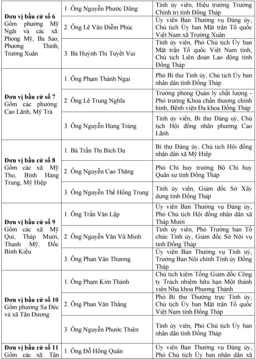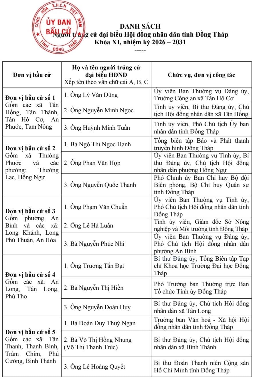 Dưới đây là chi tiết danh sách người trúng cử đại biểu HĐND tỉnh Đồng Tháp khóa XI, nhiệm kỳ 2026-2031:
