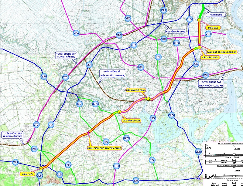 Trục đô thị nối TPHCM- Tây Ninh- Đồng Tháp. Trong đó, tỉnh Đồng Tháp đang đánh giá môi trường để triển khai thi công đoạn 14,05 km.
