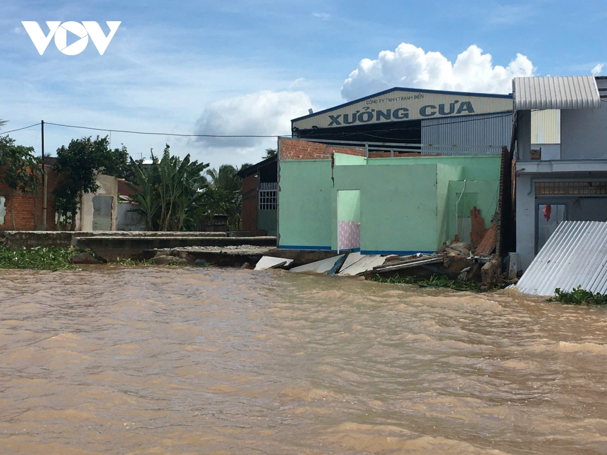 Nhiều căn nhà có nguy cơ sụp xuống dòng nước nếu sạt lở tiếp diễn