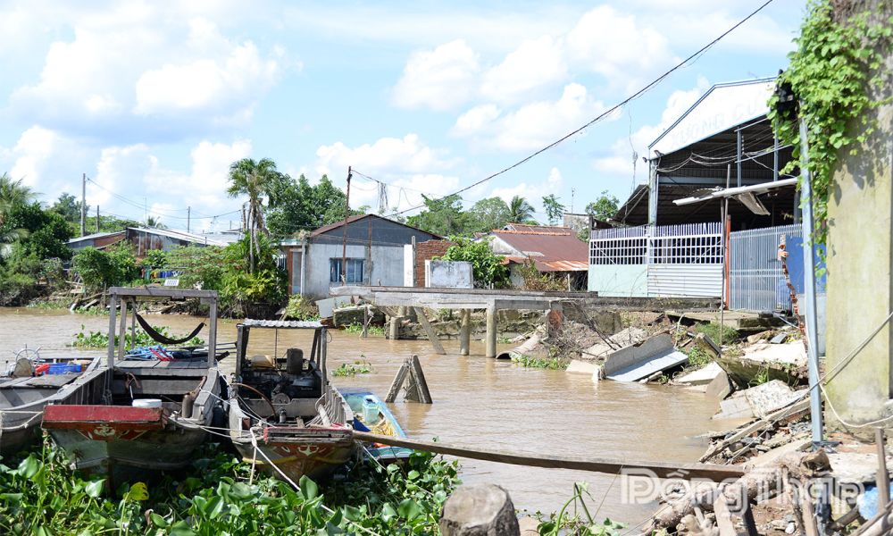 Thời gian qua, khu vực này bị sạt lở rất nghiêm trọng. Một số căn nhà, đường giao thông bị sạt lở nhấn chìm xuống sông.