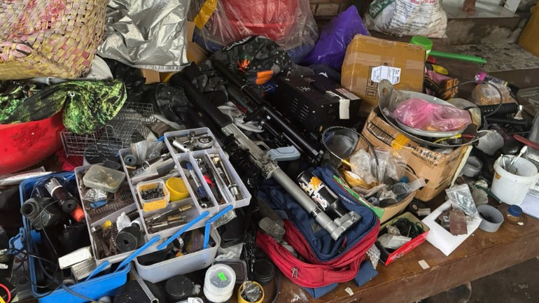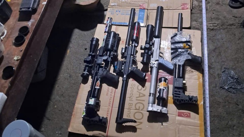 Tiến hành khám xét nơi ở của các đối tượng, cơ quan Công an thu giữ: 3 khẩu súng hơi, 1 khẩu súng Rulo, 22 hộp đạn các loại, cùng nhiều linh kiện dùng lắp ráp súng và đồ vật, tài liệu khác có liên quan.