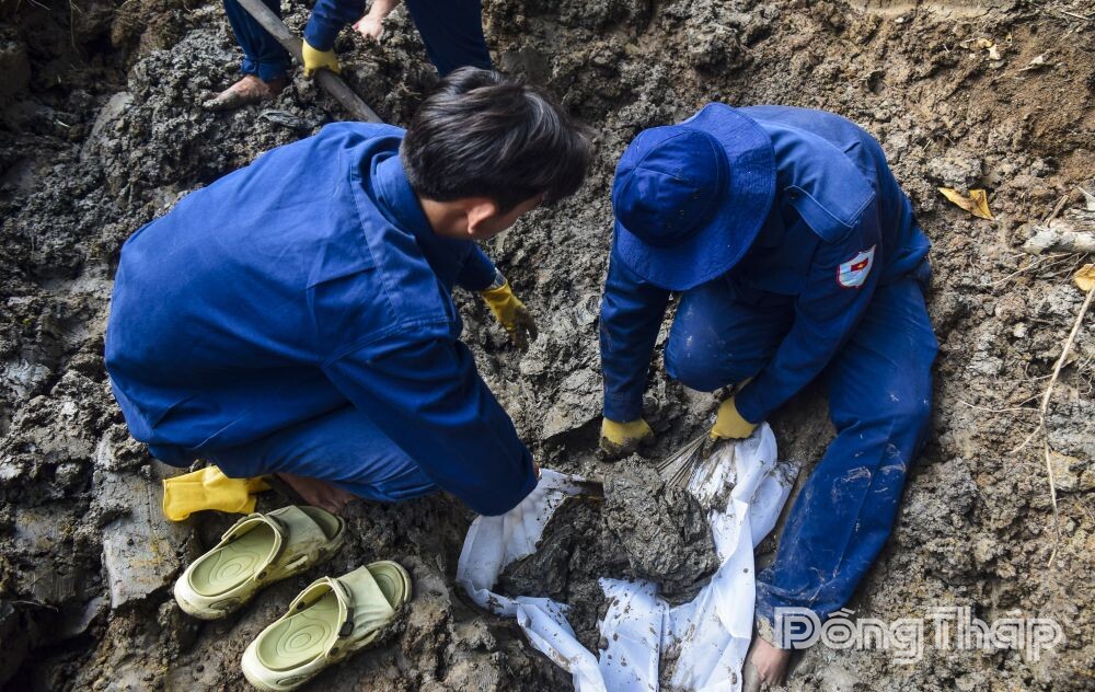 Đội K91 đào tìm hài cốt liệt sĩ tại ấp Hòa Thuận, xã Phú Hựu, tỉnh Đồng Tháp.