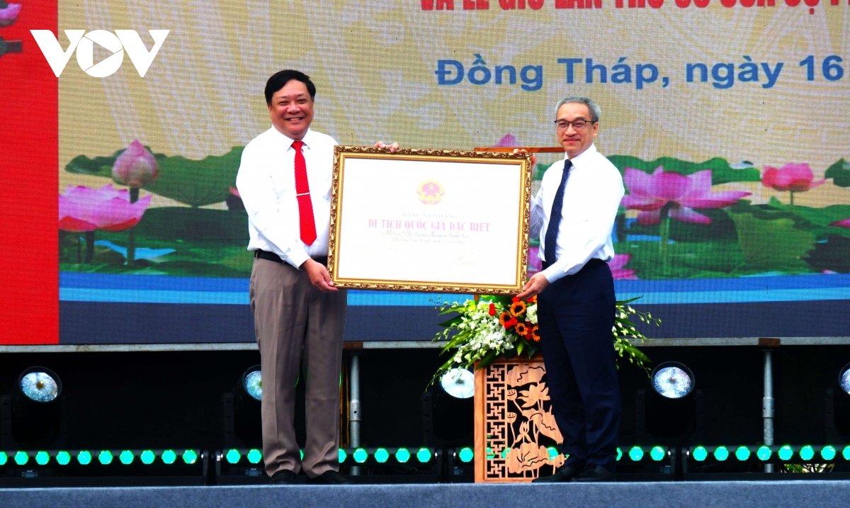Lãnh đạo Bộ VHTT&Du lịch trao Bằng xếp hạng cho tỉnh Đồng Tháp.