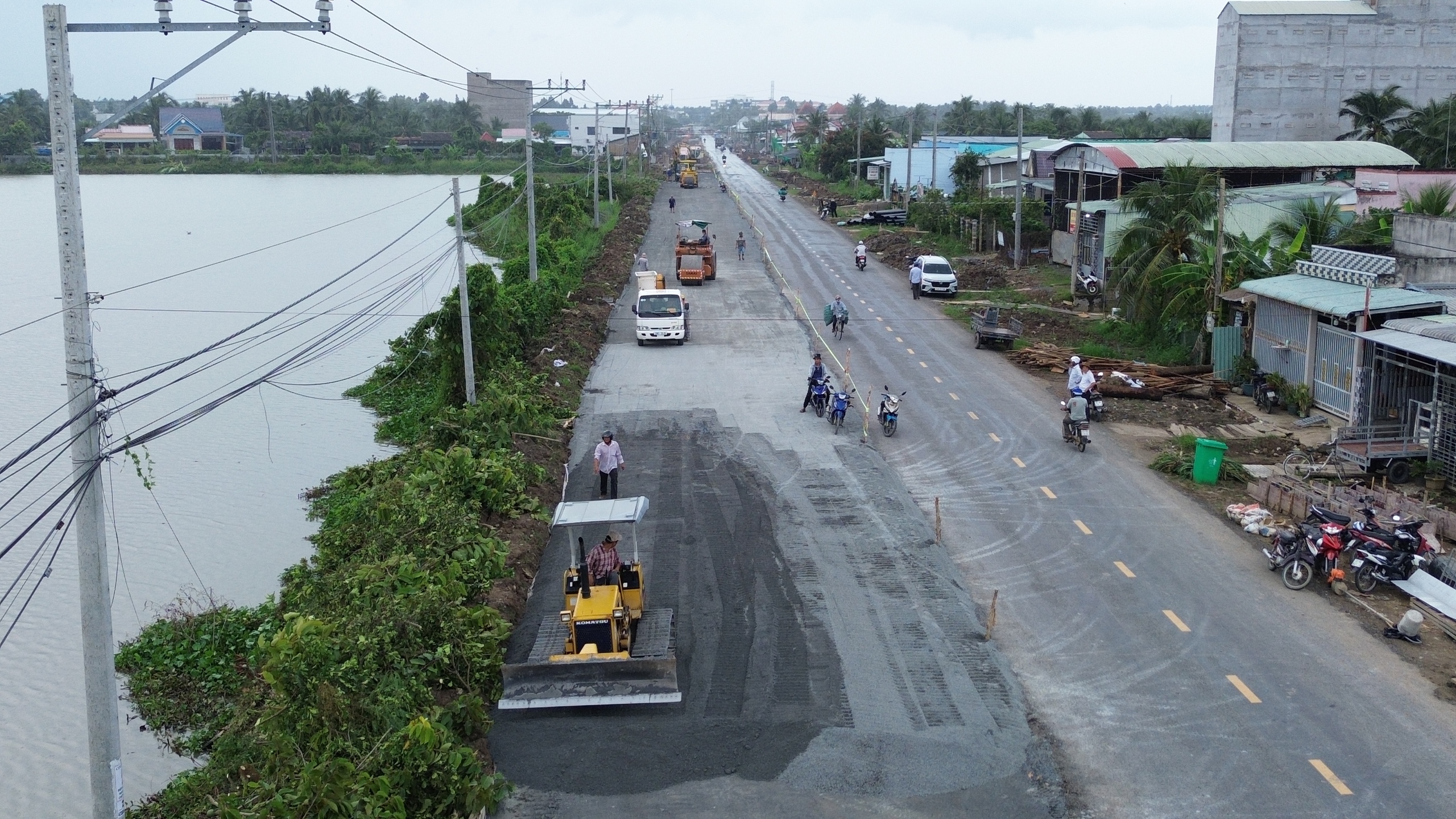 Thi công nền đường ĐT879C qua xã Chợ Gạo, tỉnh Đồng Tháp (Ảnh: Vĩnh Phú).