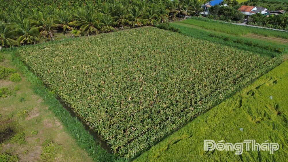 Gia đình anh Huỳnh Hữu Thọ (ấp Bình Hòa Long, xã Đồng Sơn, tỉnh Đồng Tháp) trồng hơn 2 công bắp siêu ngọt vàng. Hiện ruộng bắp đến giai đoạn thu hoạch, nhưng anh Thọ đang neo lại để chờ giá.