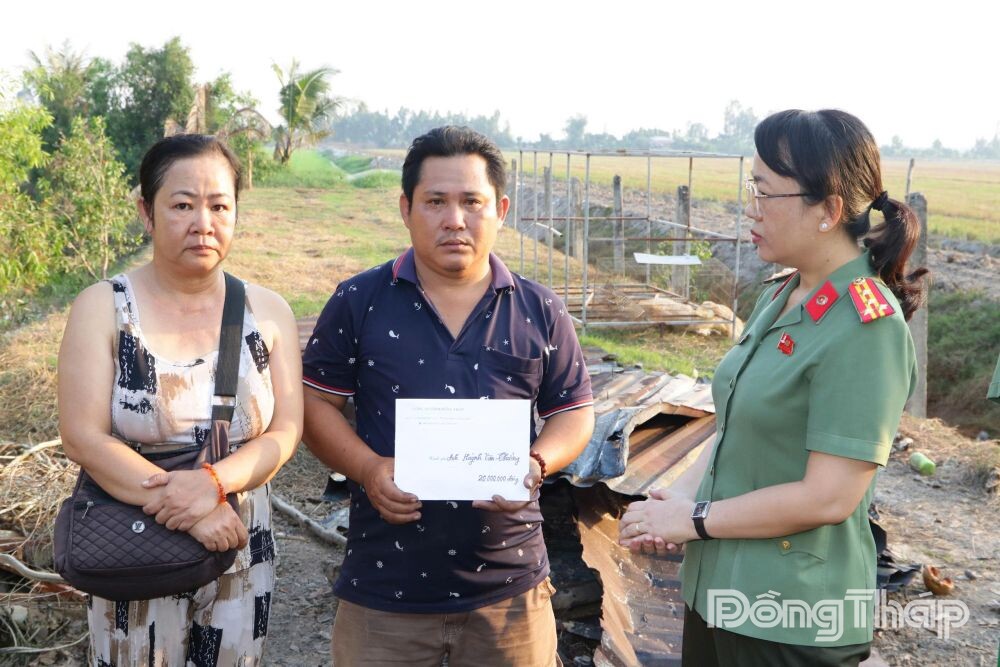 Được biết, anh Chưởng là Tổ phó Tổ Bảo vệ an ninh, trật tự Ấp 5A, xã Trường Xuân; có hoàn cảnh gia đình khó khăn. Ngoài thời gian tham gia lực lượng Bảo vệ an ninh, trật tự, anh cùng vợ đi bán vé số, giăng lưới bắt cá để trang trải cuộc sống. Căn nhà bị cháy được xây ở nhờ trên mặt ao, thuộc đất của người thân.Ngay sau khi tiếp nhận thông tin, chiều cùng ngày, Đại tá Võ Thị Hoài Ngọc, Phó Giám đốc Công an tỉnh Đồng Tháp trực tiếp đến thăm hỏi, động viên anh Chưởng cố gắng vượt qua khó khăn, sớm ổn định cuộc sống. Phó Giám đốc Công an tỉnh trao số tiền 20 triệu đồng của Công an tỉnh để hỗ trợ anh Chưởng khắc phục hậu quả vụ cháy.LONG GIANG - PHƯỚC THANH