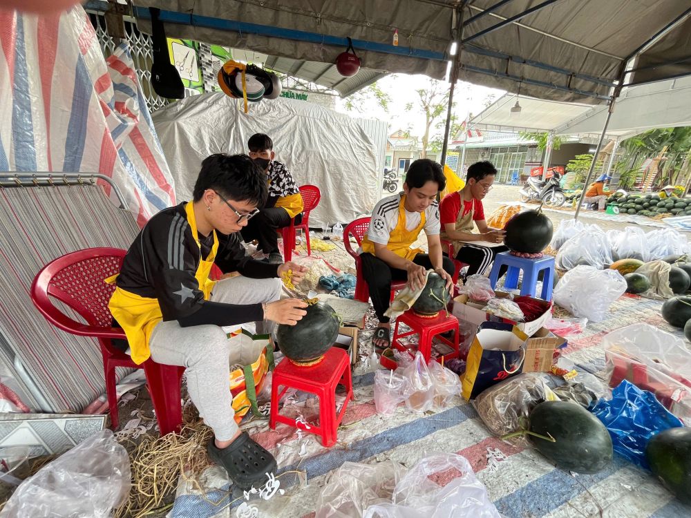 Anh Hùng tiến hành các công đoạn tạo hình cho dưa.