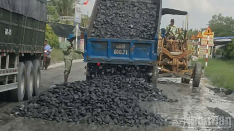Một số đoạn của tuyến đường Tỉnh lộ 852B xuống cấp được khắc phục tạm thời.