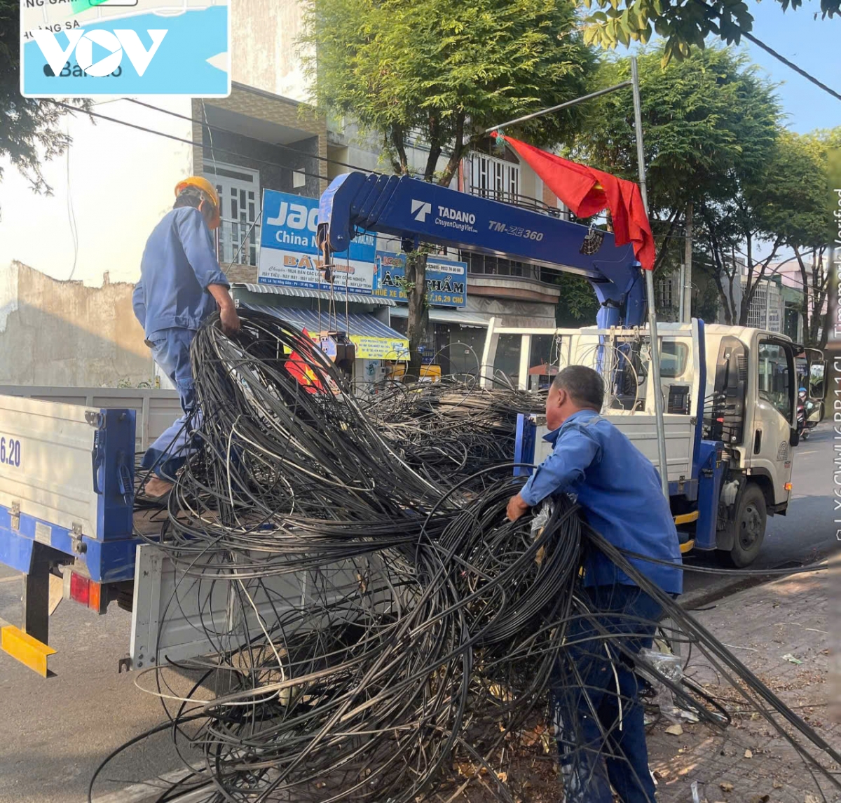 Các đơn vị có liên quan tổ chức thu gom, xử lý lượng dây cáp quang bỏ phế trên lề đường