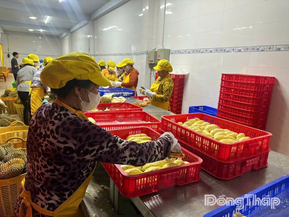 Hiện nhiều doanh nghiệp tại Đồng Tháp đẩy mạnh ứng dụng khoa học, công nghệ trong chế biến và bảo quản sầu riêng sau thu hoạch giúp nâng cao giá trị cho sầu riêng. Ảnh: Minh Thành