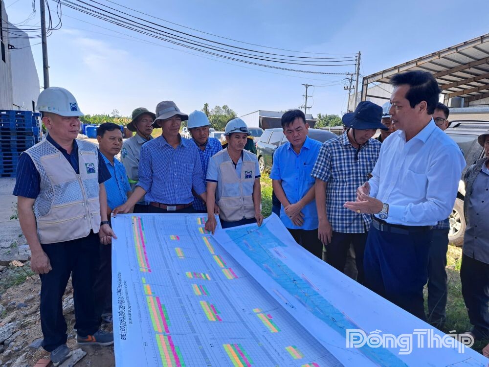 Phó Chủ tịch UBND tỉnh Đồng Tháp Nguyễn Thành Diệu cùng các sở, ngành liên quan khảo sát, kiểm tra tình hình thực hiện Dự án Xây dựng tuyến đường tỉnh 857.