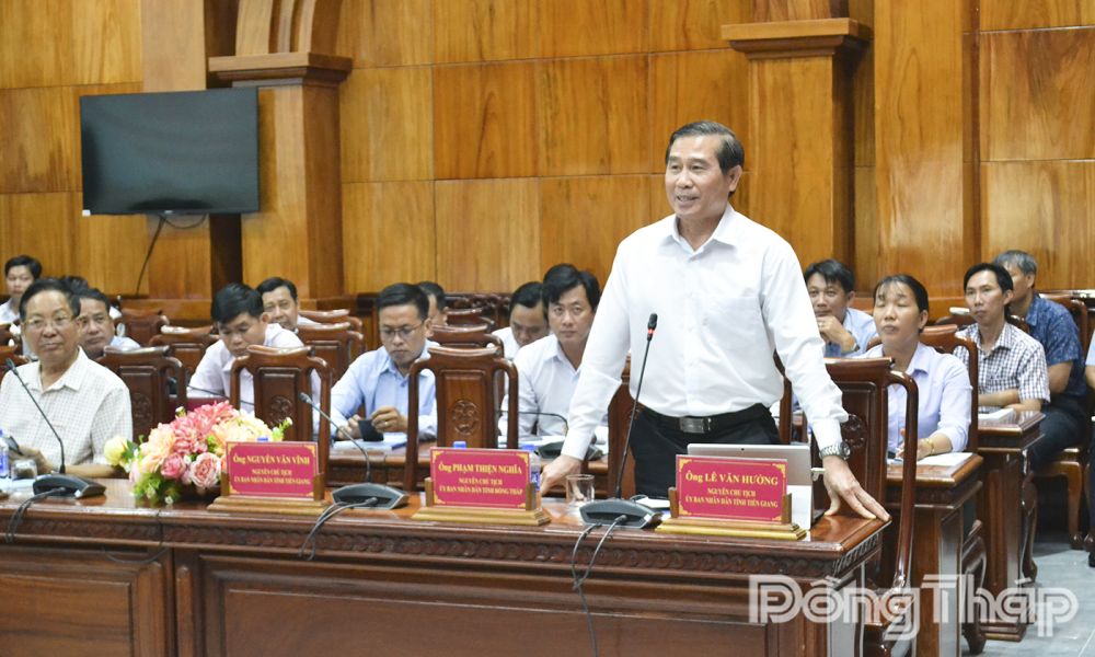 Tham dự và chủ trì hội thảo có Tiến sĩ Nguyễn Văn Khang, nguyên Phó Bí thư Tỉnh ủy, nguyên Chủ tịch UBND tỉnh Tiền Giang (cũ); Tiến sĩ Nguyễn Phước Thiện, Phó Chủ tịch UBND tỉnh Đồng Tháp; đồng chí Lê Hà Luân, Giám đốc Sở Nông nghiệp và Môi trường. Cùng dự còn có đại diện lãnh đạo các viện nghiên cứu, Đài Khí tượng Thủy văn, các đồng chí nguyên lãnh đạo tỉnh, chuyên gia và nhà khoa học.