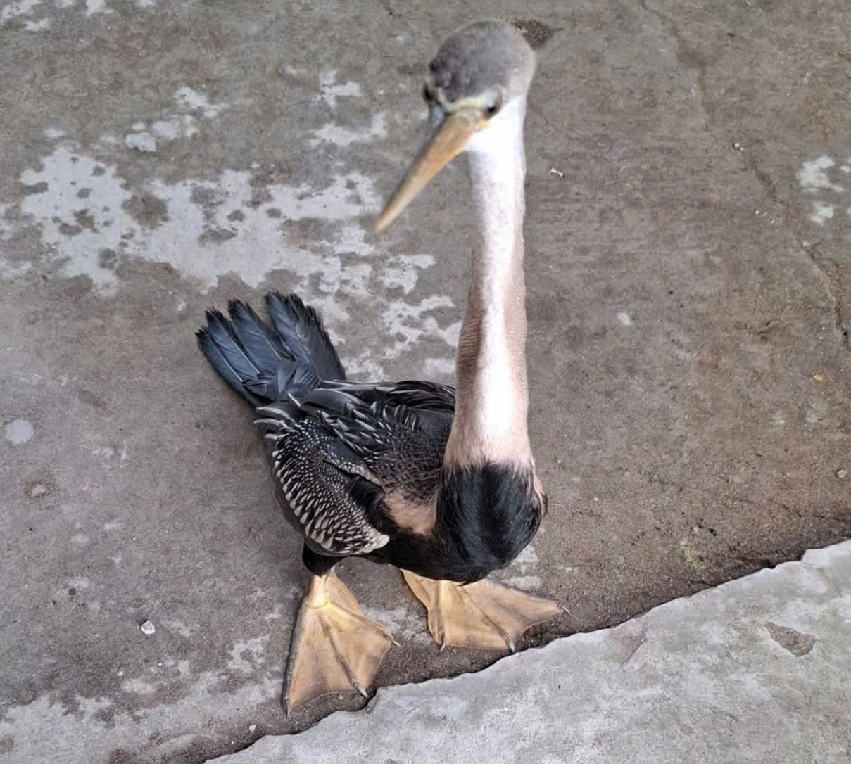 Theo cơ quan chức năng, cá thể “chim lạ” trên được xác định là chim cổ rắn, tên khoa học là Anhinga melanogaster. Đây là loài chim nước có hình dáng rất đặc biệt như cổ dài và mảnh, khi bơi phần thân chìm dưới nước, chỉ ló cái cổ lên nên trông giống con rắn. Vì vậy, người dân gọi là chim cổ rắn.