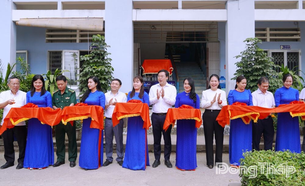Đồng chí Lê Quốc Phong, Phó Bí thư Thường trực Thành ủy TP. Hồ Chí Minh cùng đồng chí Phan Văn Thắng, Phó Bí thư Thường trực Tỉnh ủy, Chủ tịch Ủy ban Mặt trận Tổ quốc Việt Nam tỉnh Đồng Tháp tặng hệ thống lọc nước RO cho trường học tại xã Tân Hồng.