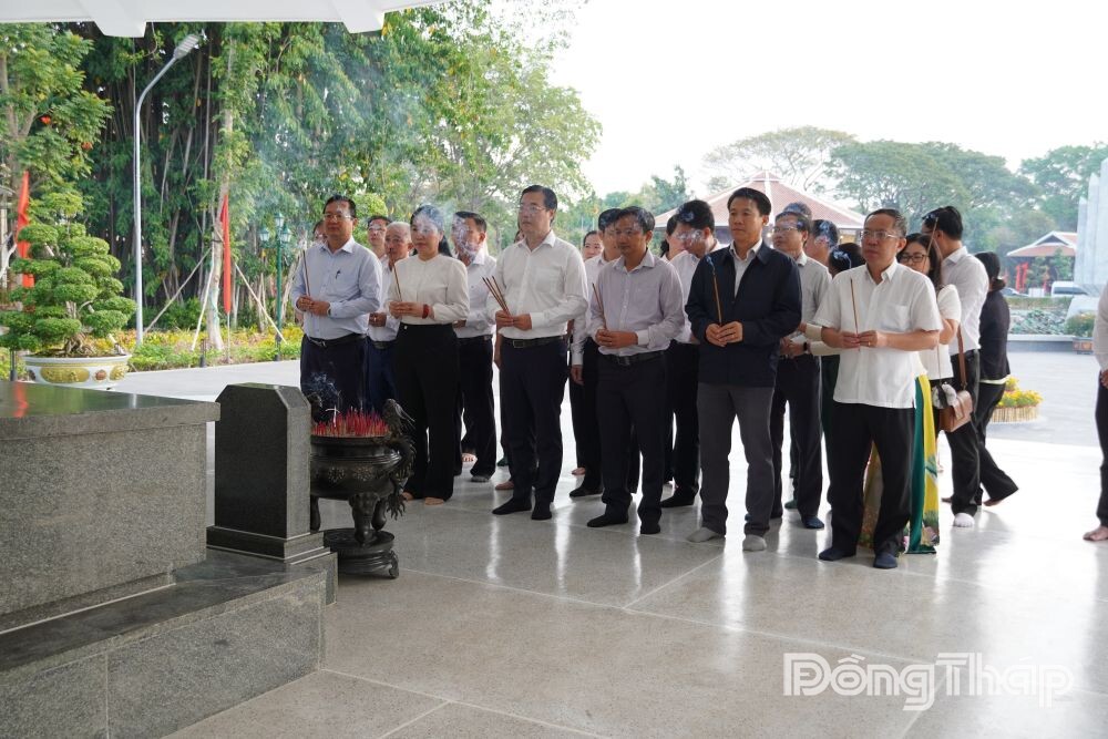 Đoàn đến viếng và thắp hương tại mộ cụ Phó bảng Nguyễn Sinh Sắc.