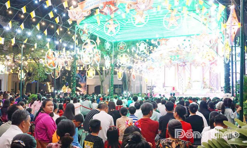 Tại các nhà thờ, xứ đạo, từ rất sớm, giáo dân và người dân tề tựu về tham dự Thánh lễ mừng Chúa Giáng sinh. Khuôn viên nhà thờ được trang trí công phu với hang đá, tiểu cảnh, ánh đèn lung linh thu hút nhiều người đến tham quan, chụp ảnh lưu niệm.