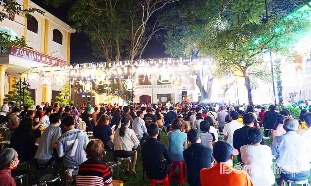 Đông đảo người dân đến Tòa Giám mục Mỹ Tho dự lễ, vui chơi.