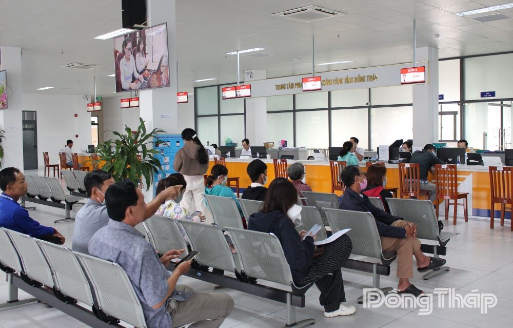 Người dân đến thực hiện thủ tục hành chính tại Trung tâm Phục vụ hành chính công tỉnh Đồng Tháp (trụ sở phường Đạo Thạnh). Ảnh: PHƯƠNG MAI