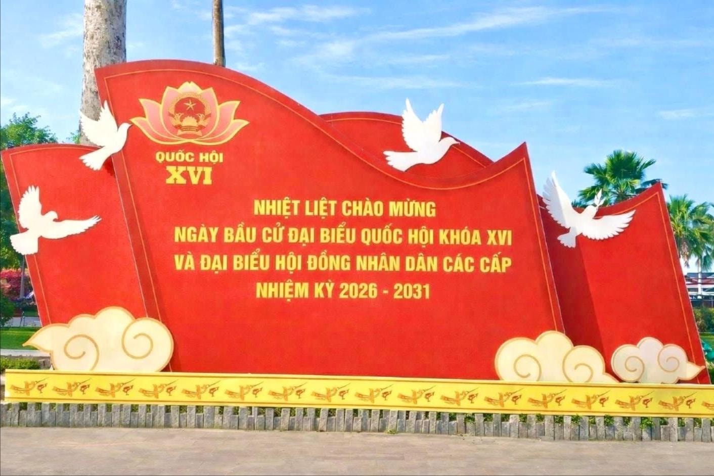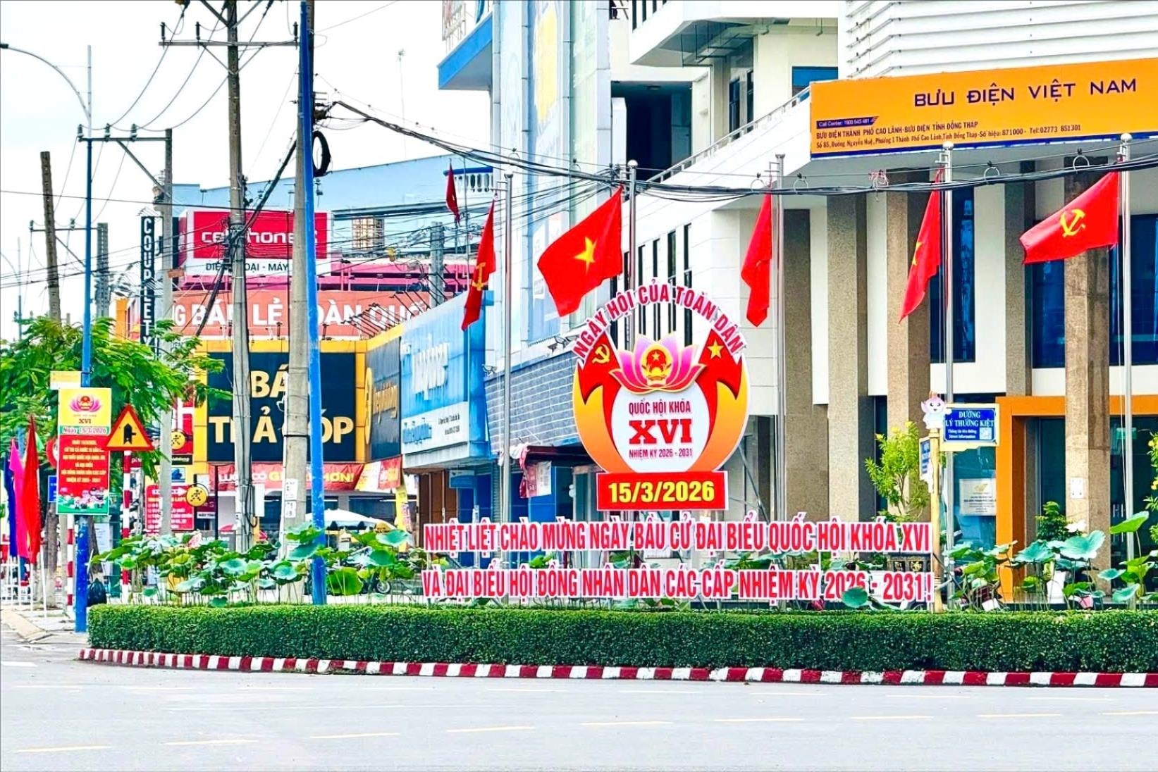 Pano tuyên truyền về bầu cử được trang trí trên tuyến đường chính tại phường Cao Lãnh