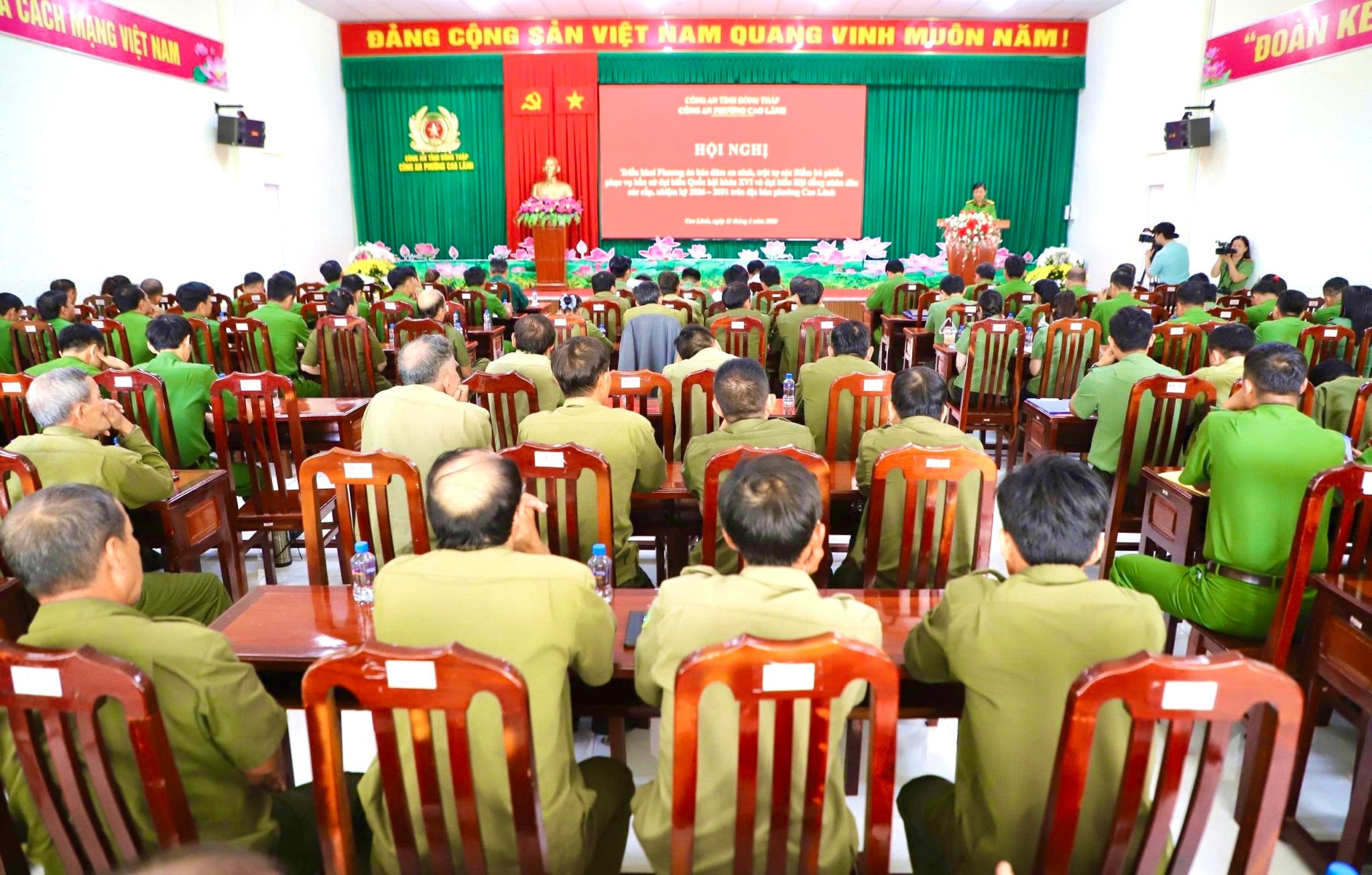 Quang cảnh hội nghị triển khai phương án bảo đảm ANTT cho cuộc bầu cử của Công an phường Cao Lãnh