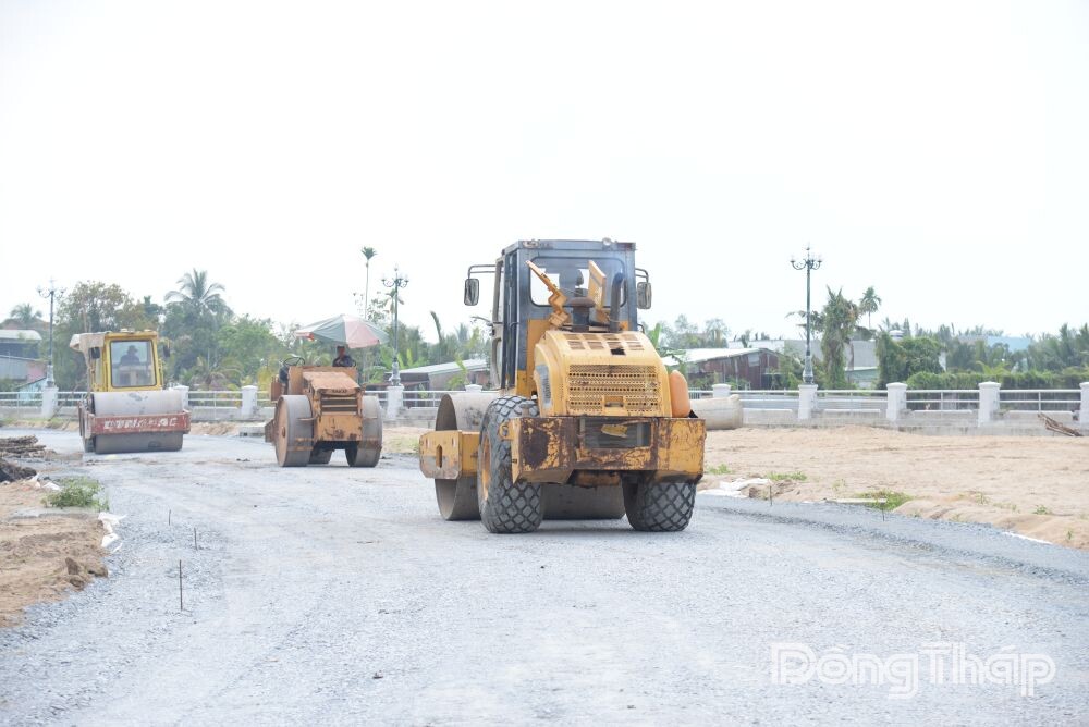 2 gói thầu đầu tuyến thuộc dự án đường giao thông 2 bên bờ sông Bảo Định đang được đẩy nhanh tiến độ để chuẩn bị láng nhựa.
