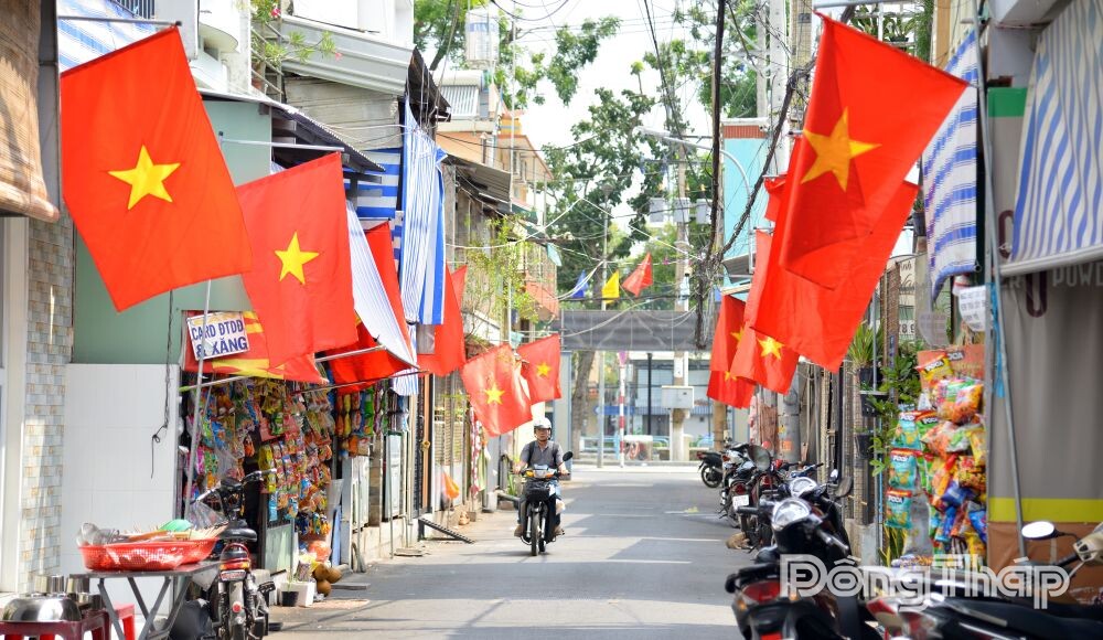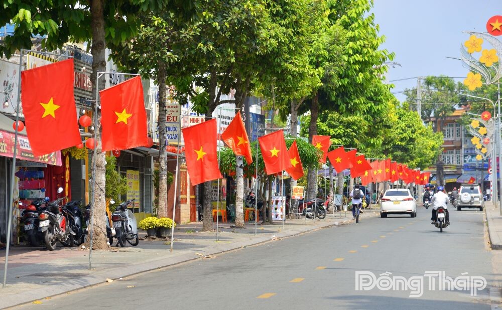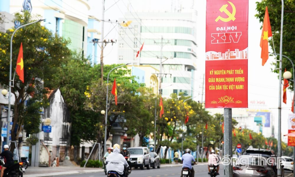 Cùng với cả nước, Đồng Tháp rực rỡ trong sắc đỏ của cờ Đảng, cờ Tổ quốc, băng rôn, khẩu hiệu chào mừng Đại hội XIV.