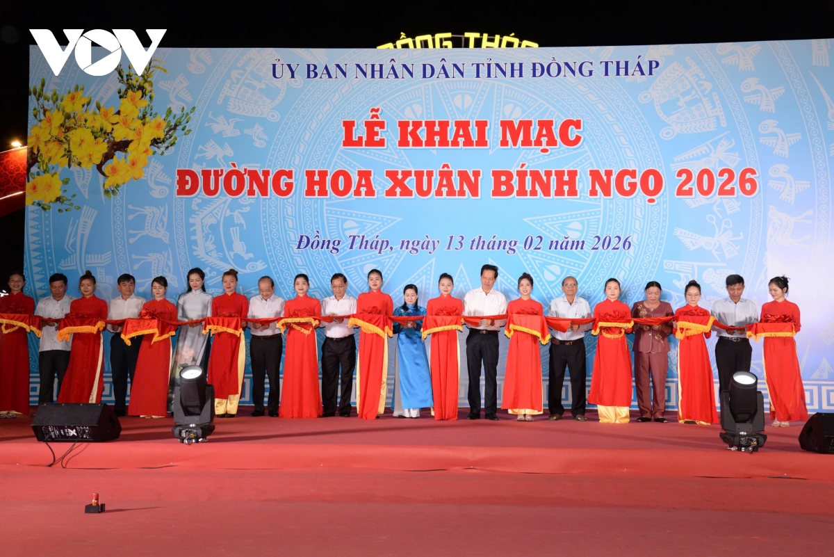 Các đại biểu dự lễ khai mạc Đường hoa Xuân Bính Ngọ tại tỉnh Đồng Tháp